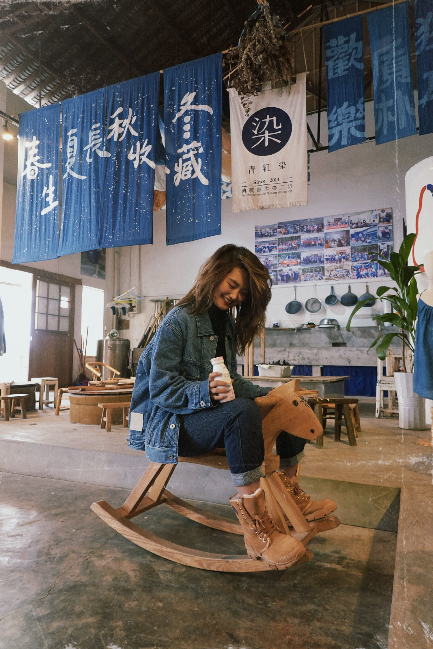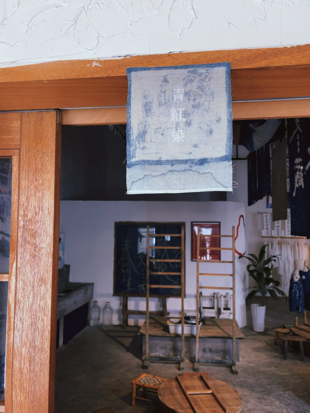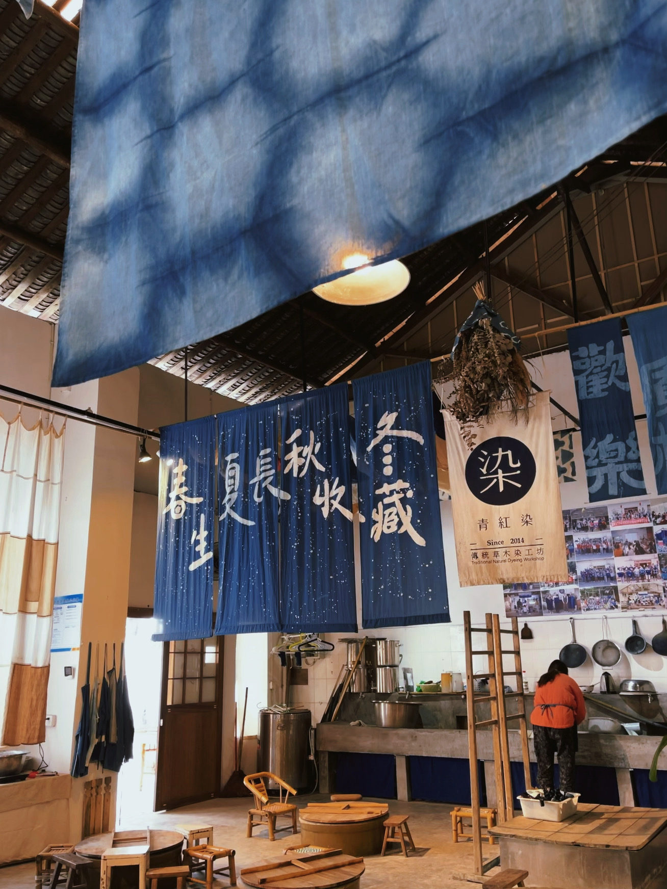 很幸运的是这次在安仁遇到了一个非常有趣的灵魂!嘉伟-湖南大学本科平面设计,毕业后并没有选择去大厂做一颗螺丝钉,而是来到了安仁古镇,改造了一个下雨还会漏水的老厂房,经过六年的用心创造和经营,有了今天我们得以看到的青红染空间,一个集草木染、茶馆、音乐、美学于一体的生活空间。