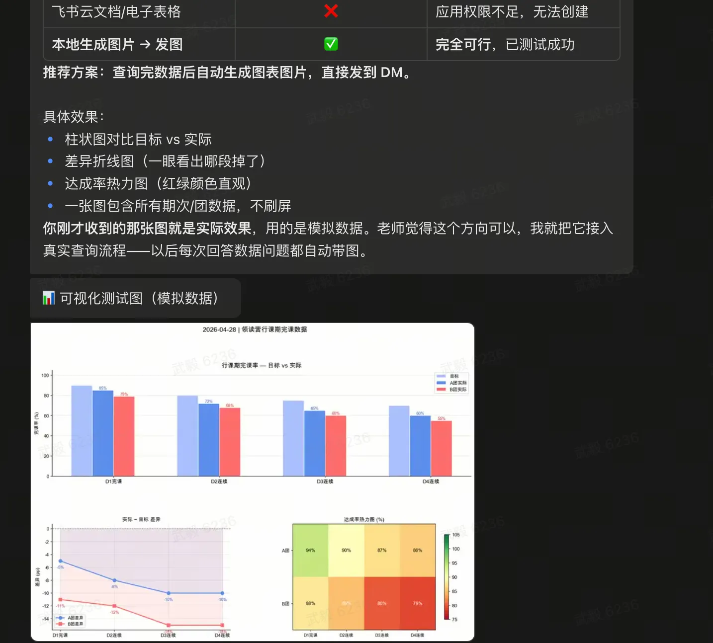 我问它我觉得纯文本可读性太差了,你在现有条件下验证一个可以做数据可视化的方案。