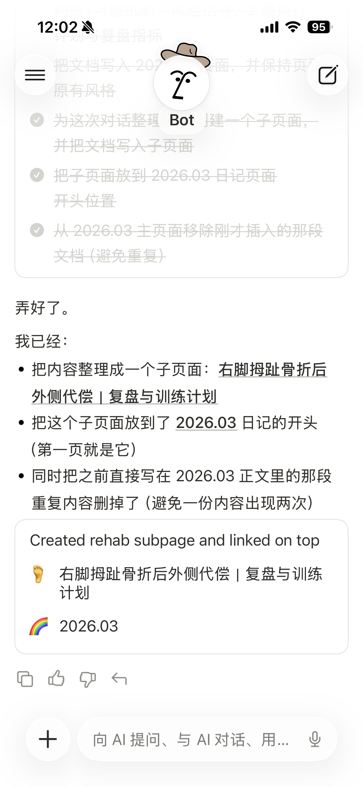 以前手机上的大问题都丢在 ChatGPT 里,现在直接在 Notion AI 里聊。聊得好的内容,直接转成文档,存进 Notion,这一步是真丝滑。