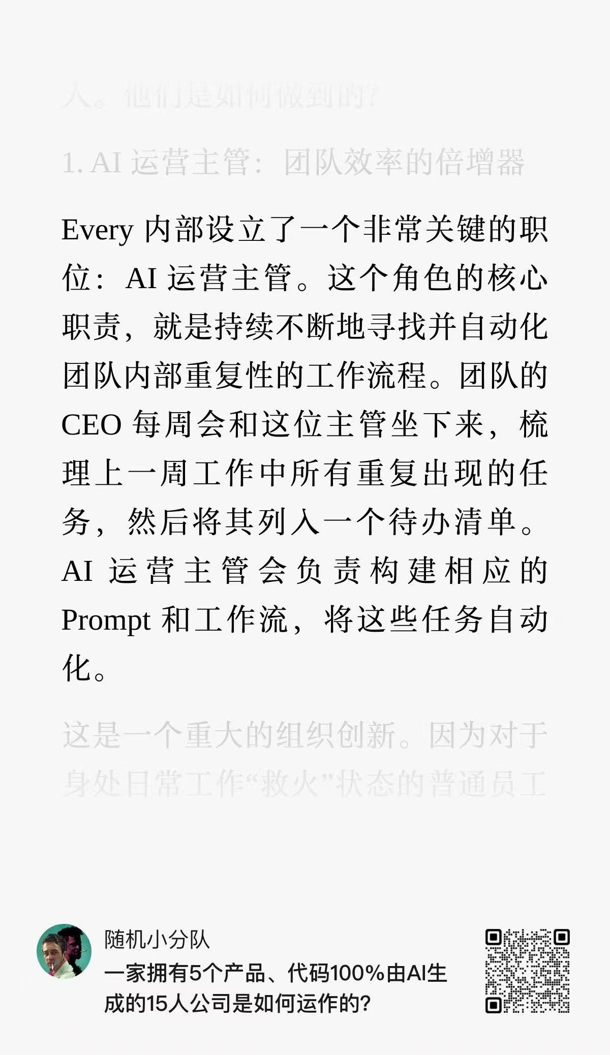 虽然这篇文章,已经是半年前的了,但是 Every 的 AI 实践和组织方式,还是很有参考价值。