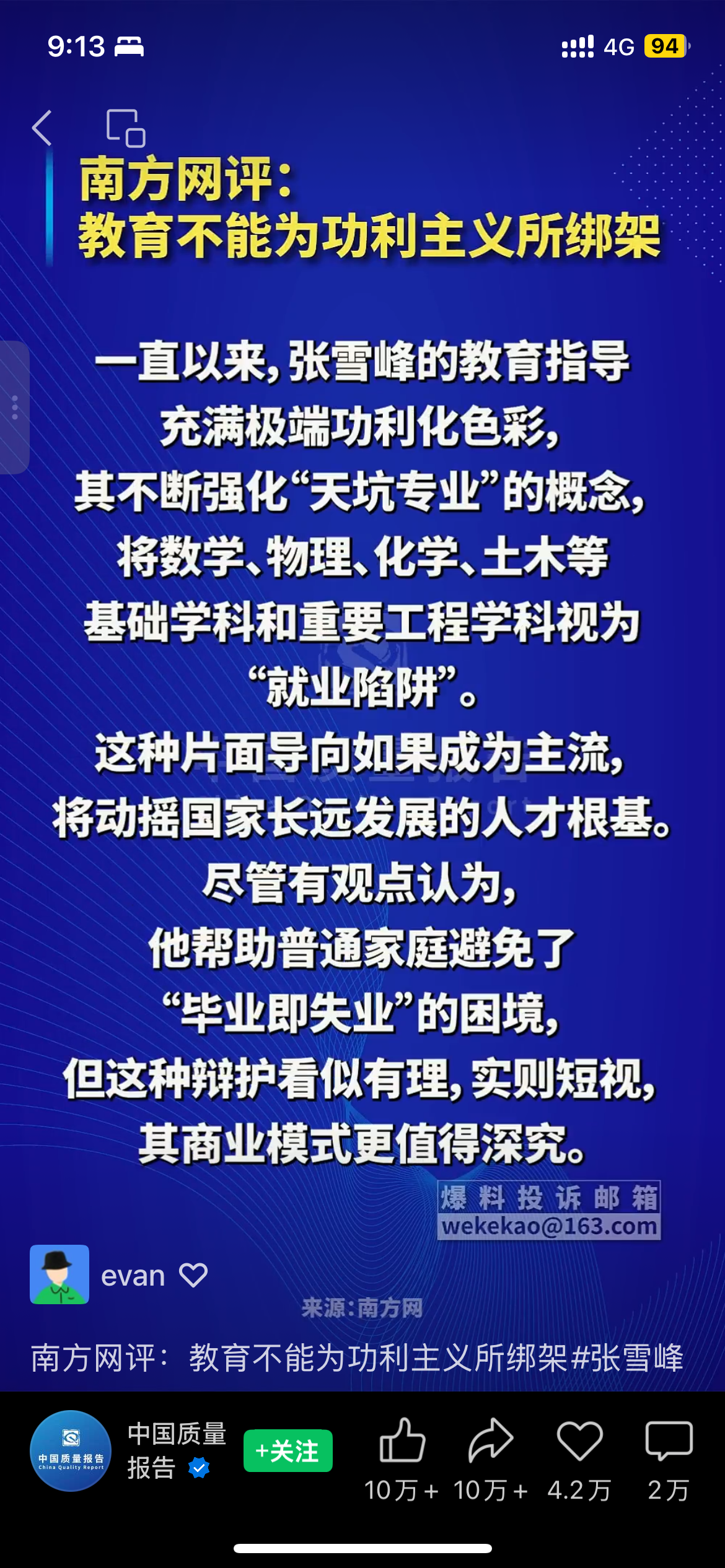 张雪峰这段通报让我想起了中学时期我的老师和校长经常对我说的一段话:你一个人看小说不要紧,那要是全校学生都看小说,那不完了吗?