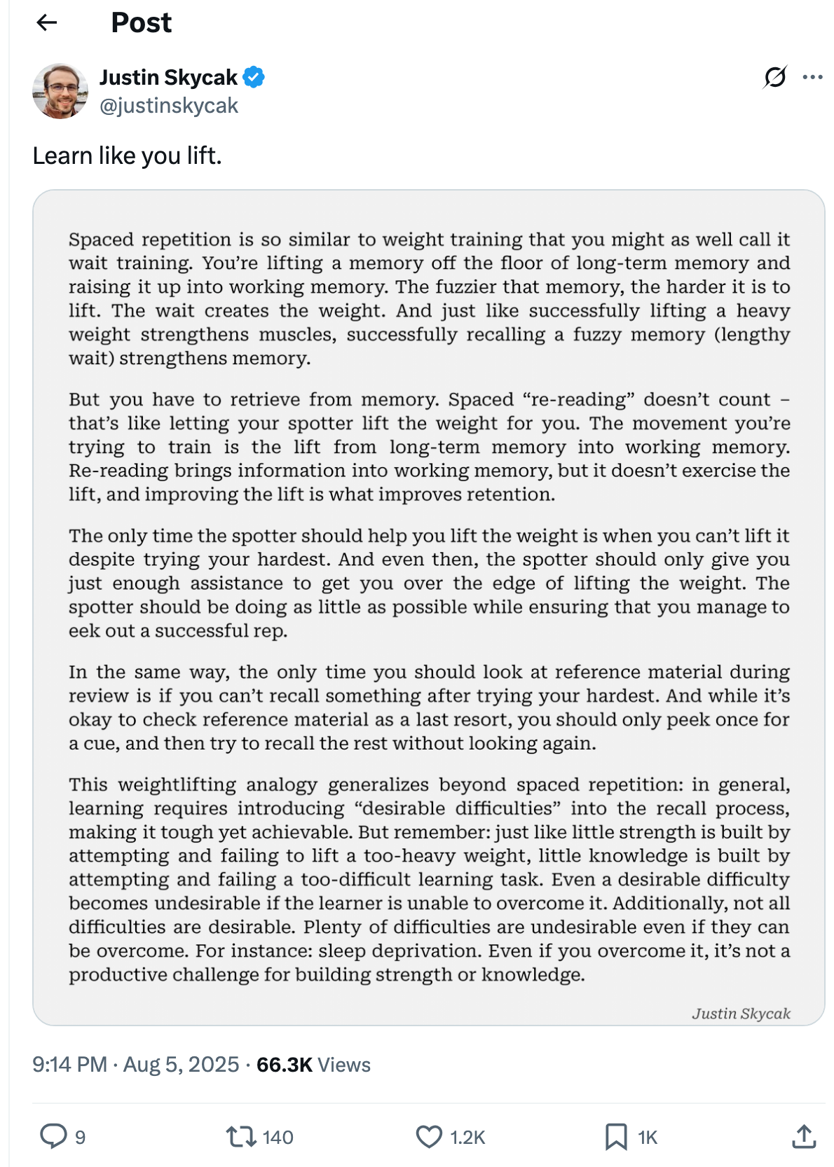 学习就像力量训练,想起来这个推: