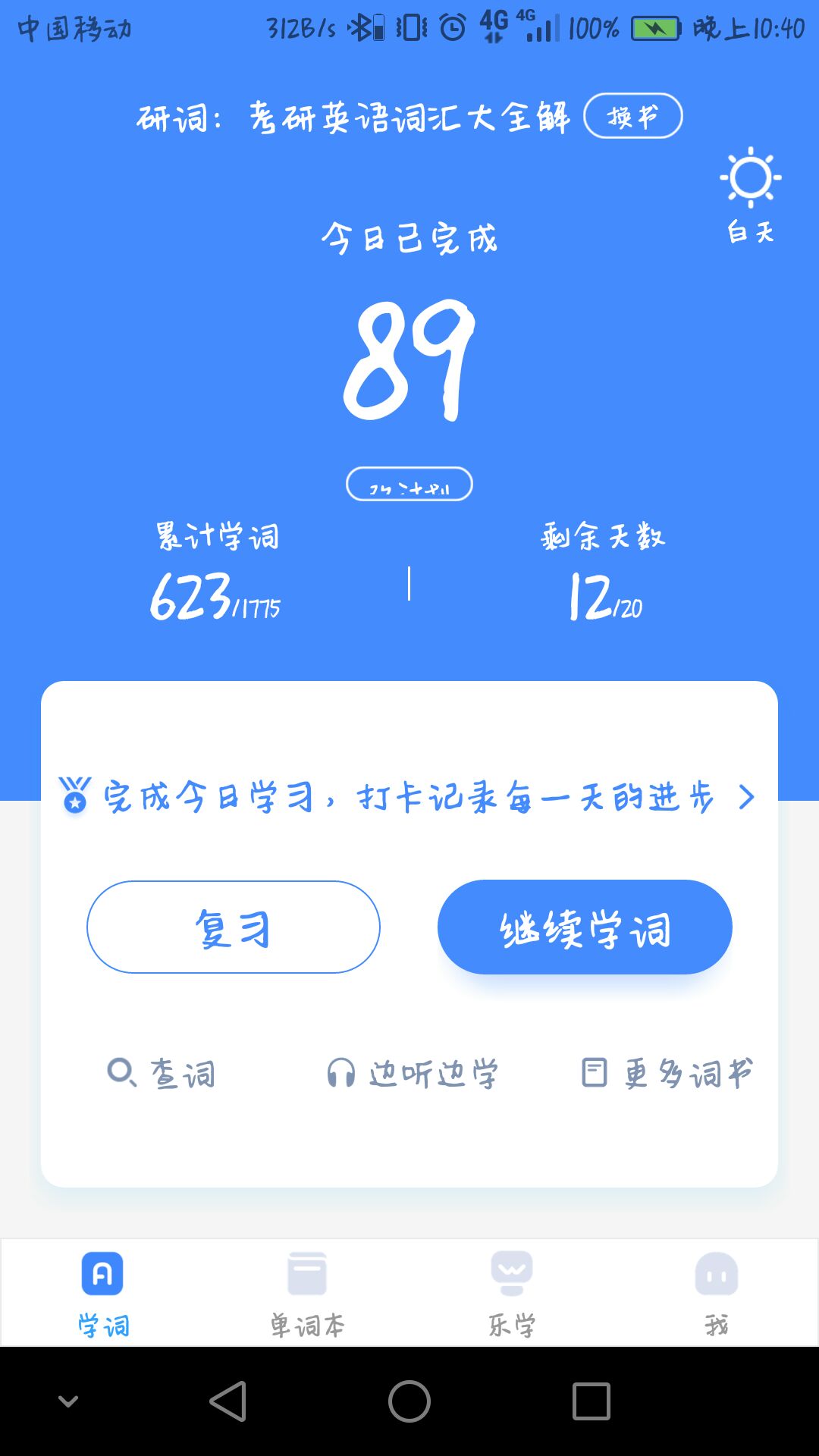 昨天果然单词打卡完了,所以今天只能助力解锁。除了这个今天还背了乐词,第一天,20 天一个周期,不过忘了截图了,还有十天计划list7
