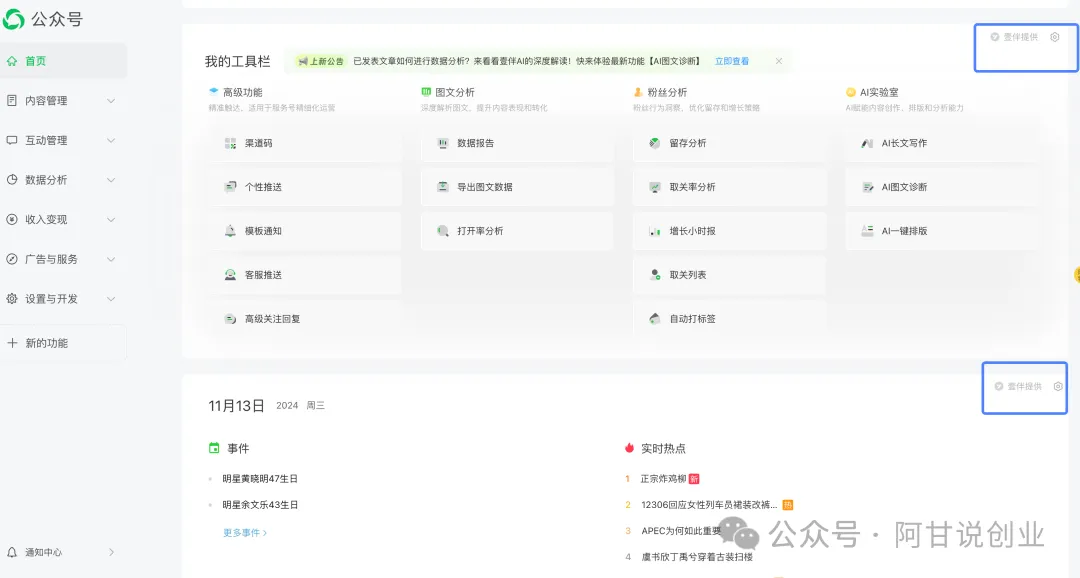 授权完成后,跳到微信公众号首页,往下滑可以看见由壹伴提供的各种工具,可以直接进行长文写作和一键排版,功能都比较完善,大家有时间可以多研究一下。