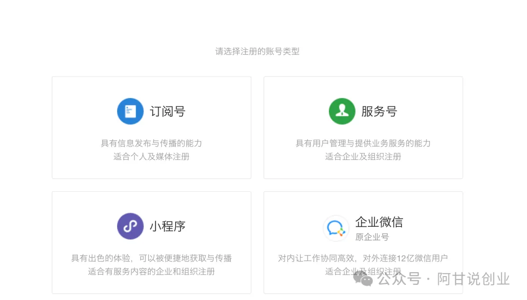 网页版注册:浏览器搜索微信公众号平台官网,根据自己的需求选择订阅号,服务号进行注册