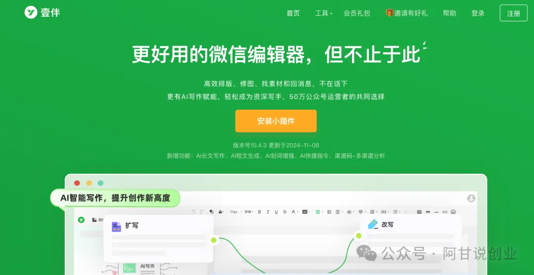 微信公众号编辑器壹伴,打开网址,点击安装小插件
