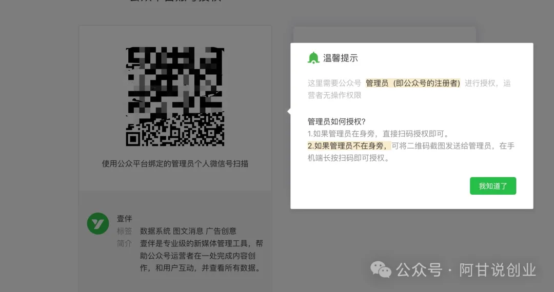 打开官网,扫码授权公众号就可以,一定要用管理员的微信,不能是运营者的,运营者的扫码没有用。