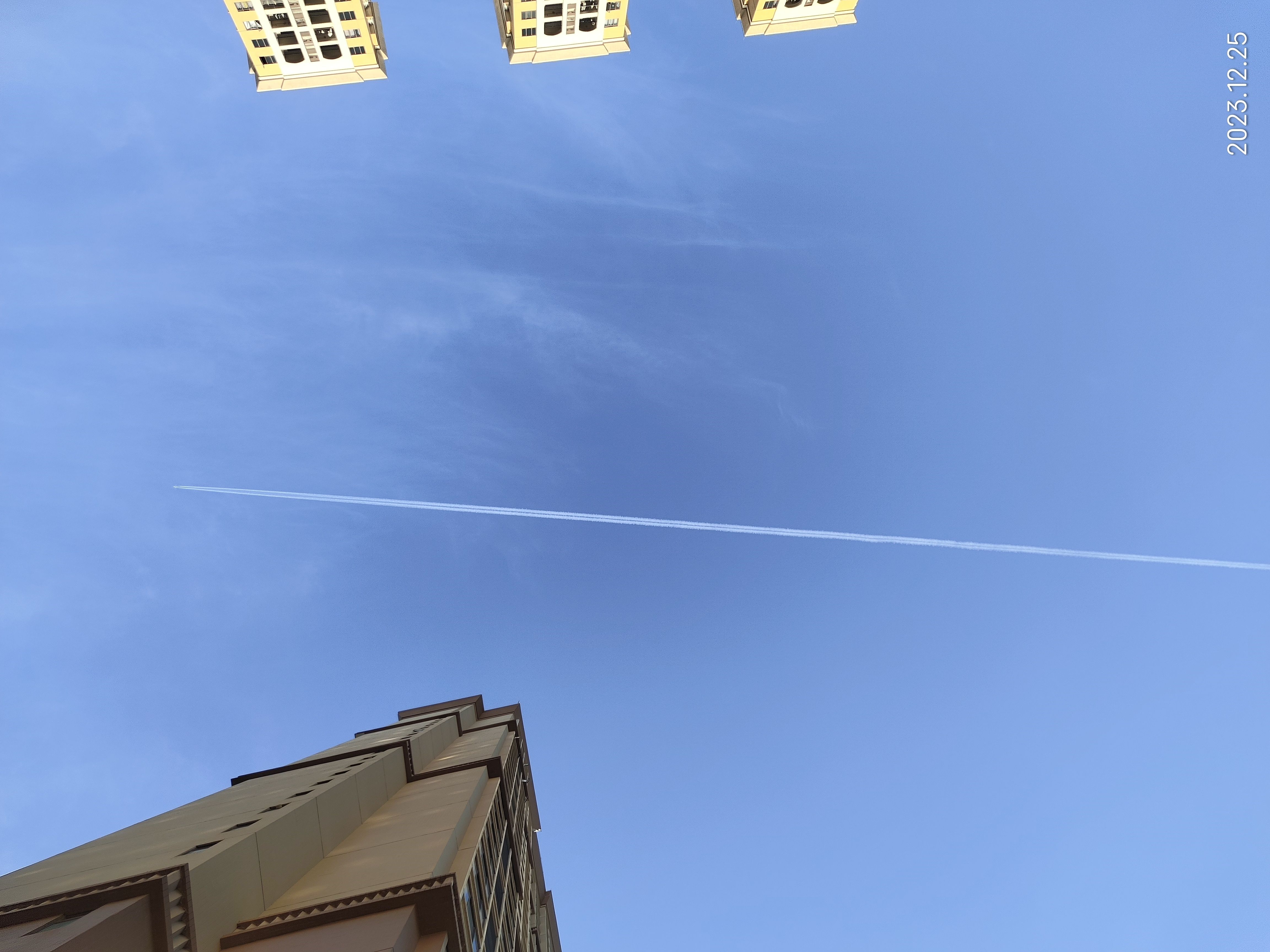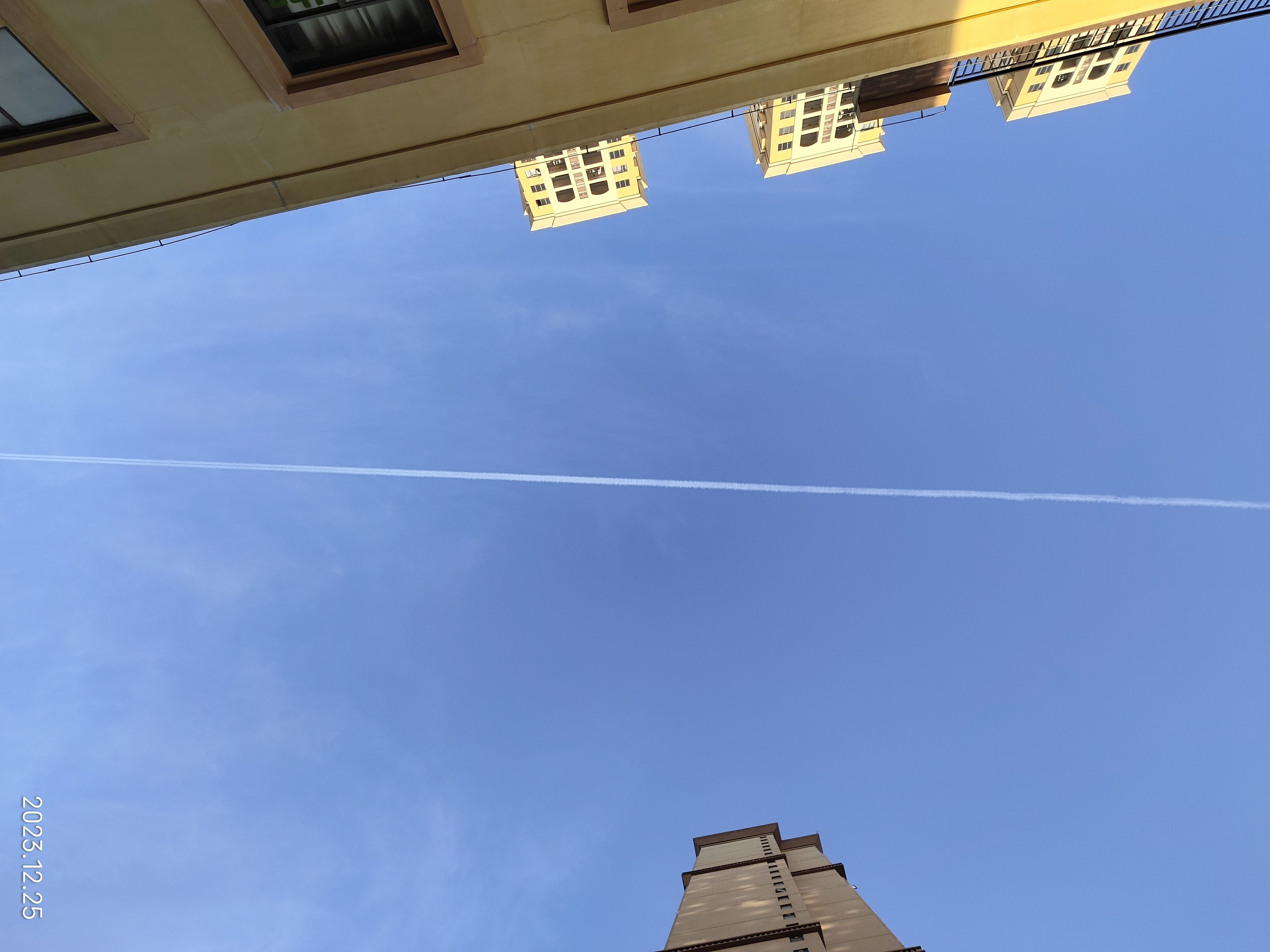 看✈️咻的一下划破蓝天疾驰而去,留下一道分隔线