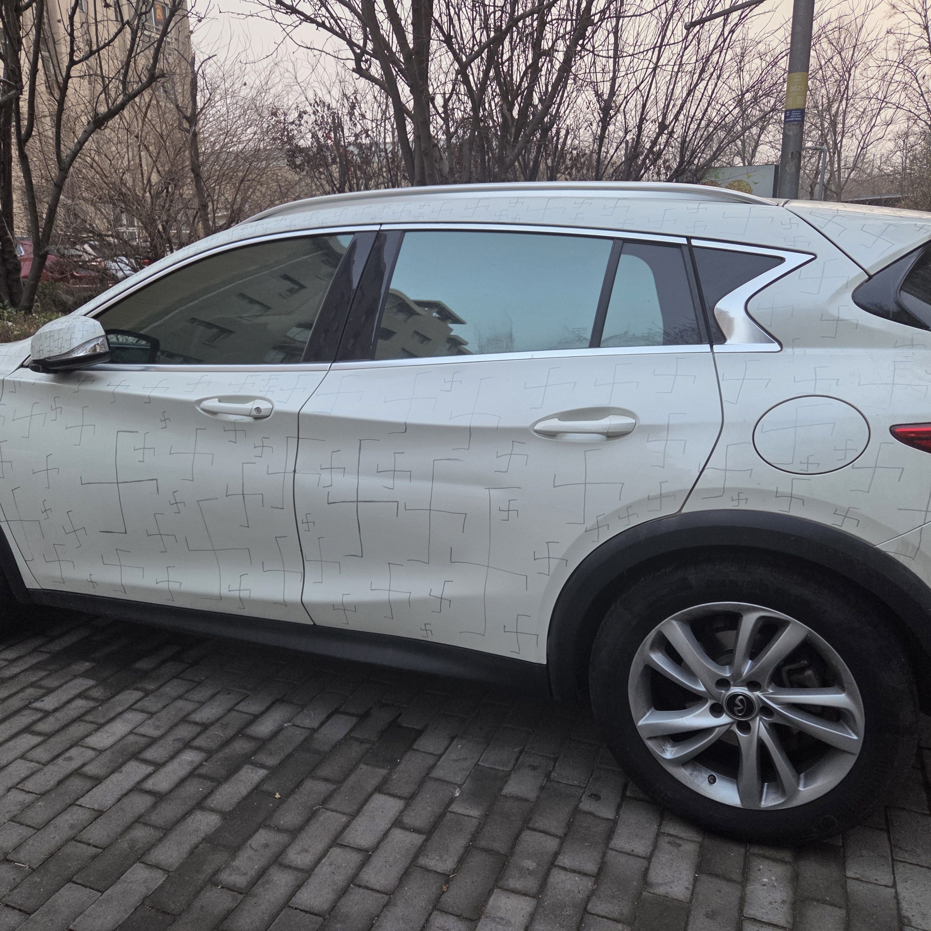 震惊我,不知道这人的车是被小孩画的,还是被人故意画的