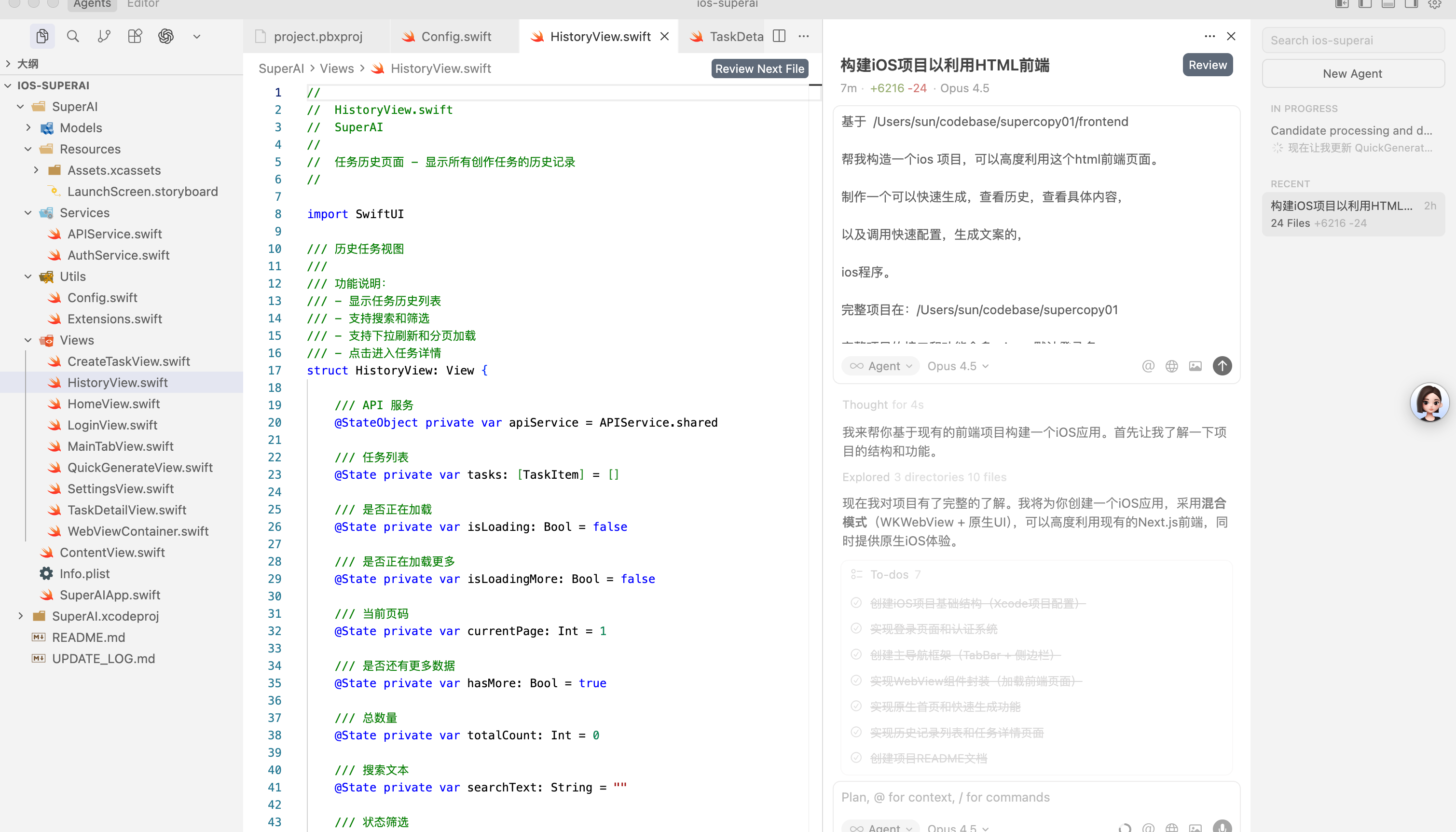 制作过程是将之前 gemini 生成的代码直接粘给 curso,并且说明了我的需求是哪些。然后后续他就逐步生成所有的页面,中间有一些小的 bug, 做了一些修复。然后语音识别调取了另外一个 APP 里边的成熟代码,让他进行参考。
