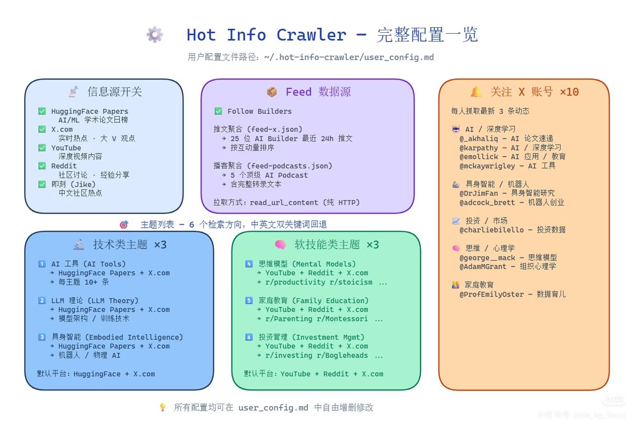 ✅ 主题、平台、关注账号全部可配置,改个配置文件就行