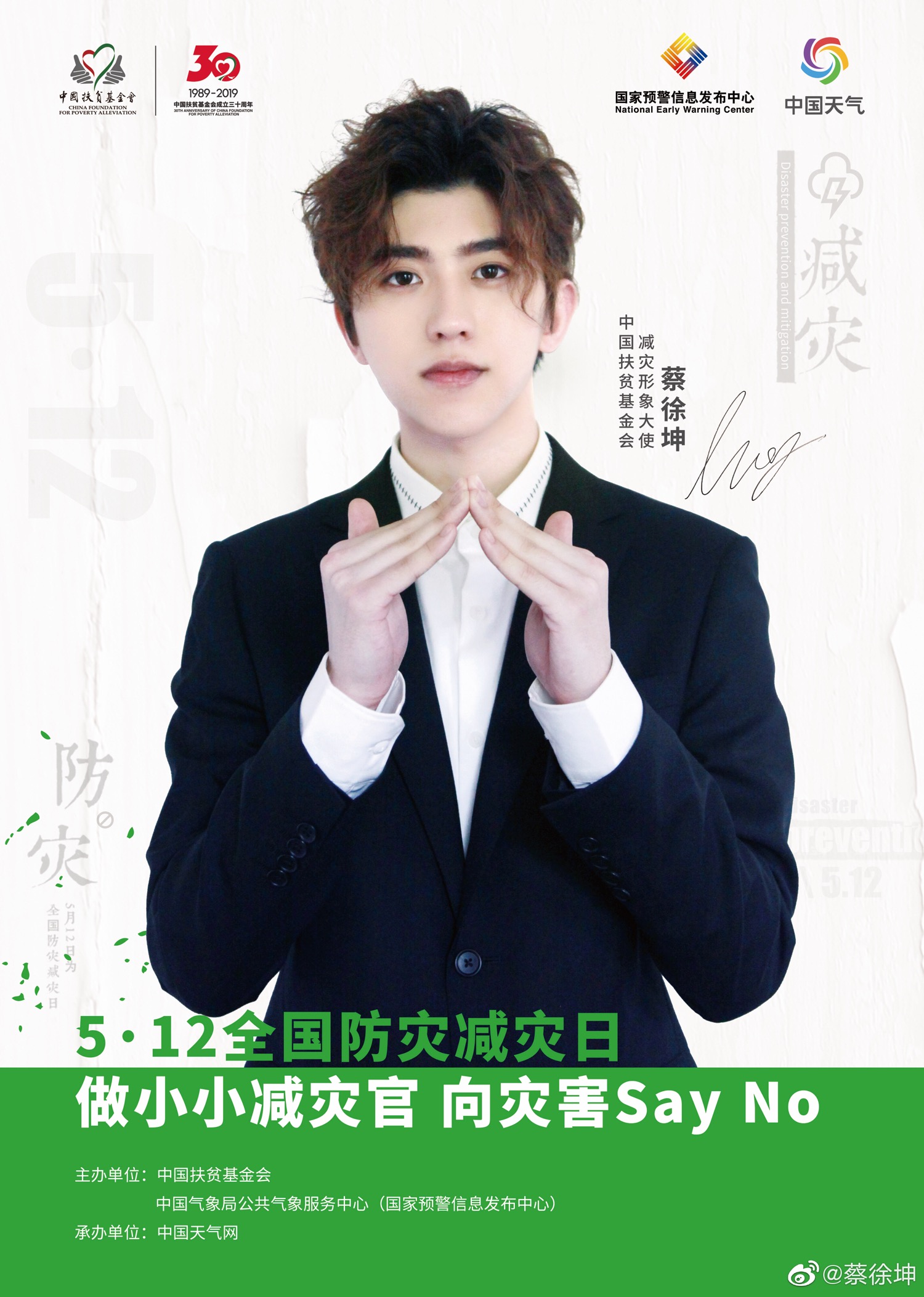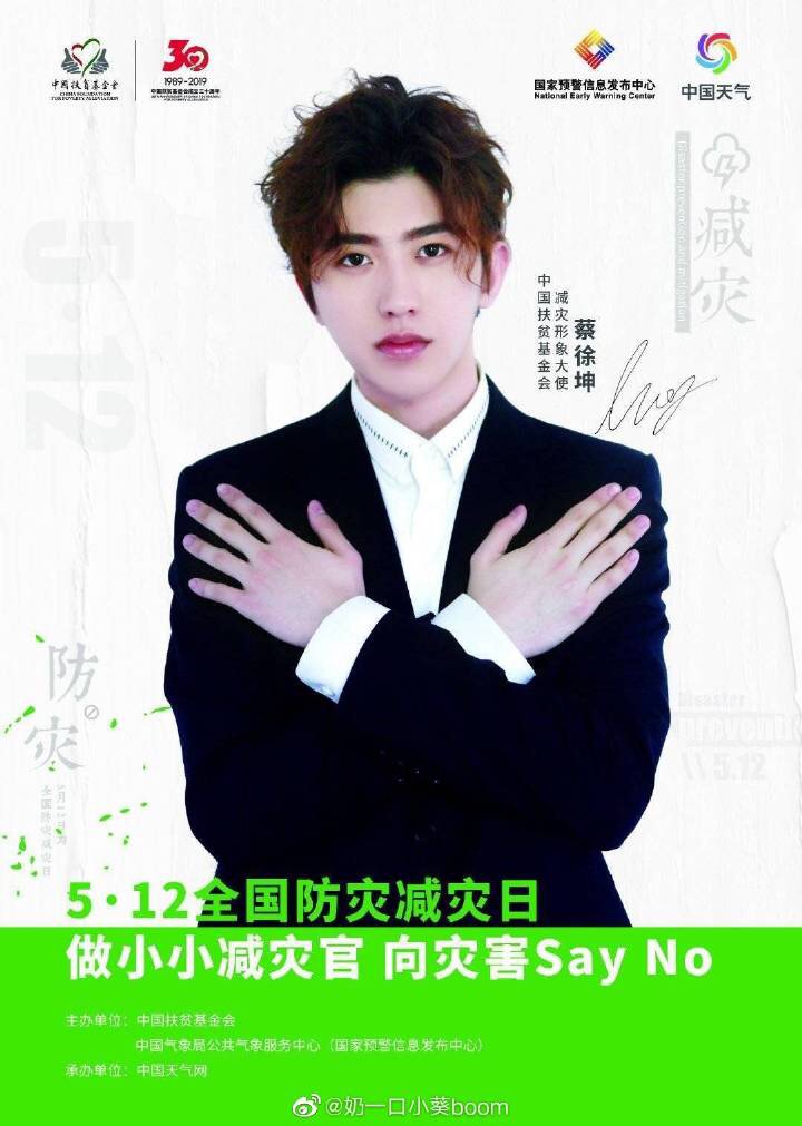 蔡徐坤很荣幸的成为中国扶贫基金会的减灾形象大使,和蔡徐坤一起关注儿童减防灾。