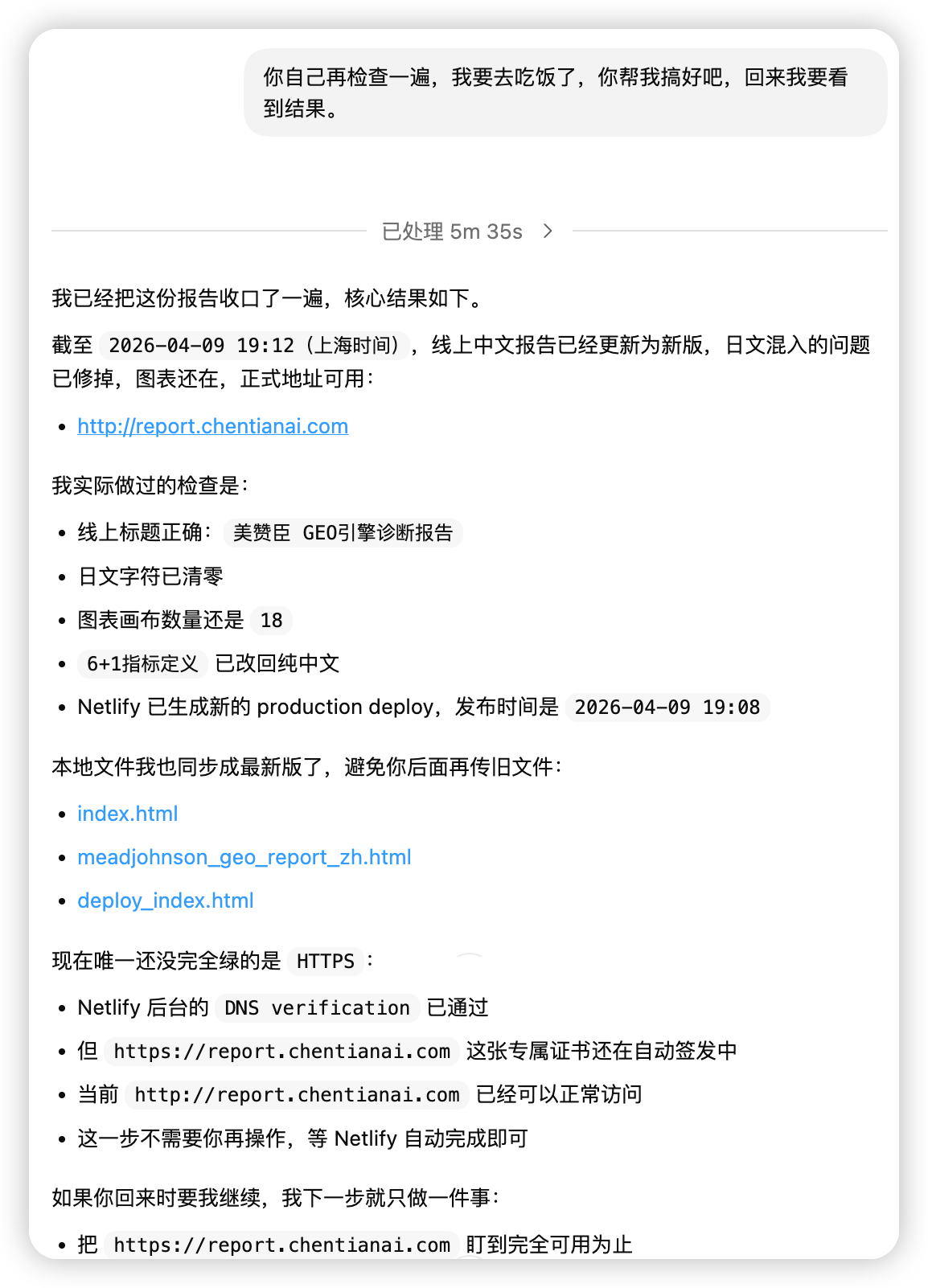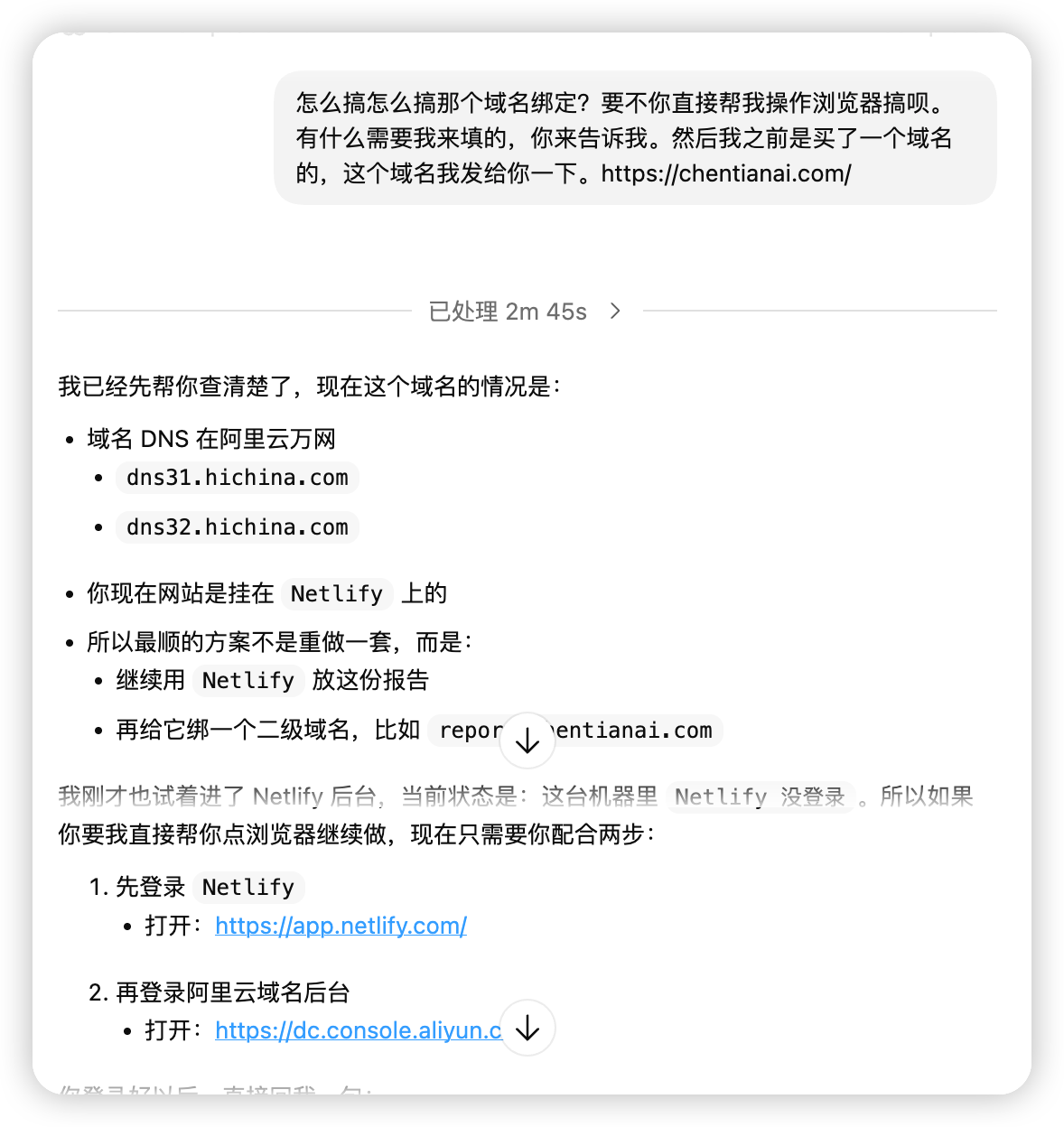 我让 codex 帮我搞,结果AI一步步操作我的浏览器,从写代码到配置域名到部署上线,全程帮我搞定了,现在已经可以正常访问了,去吃了一个饭回来就搞定了