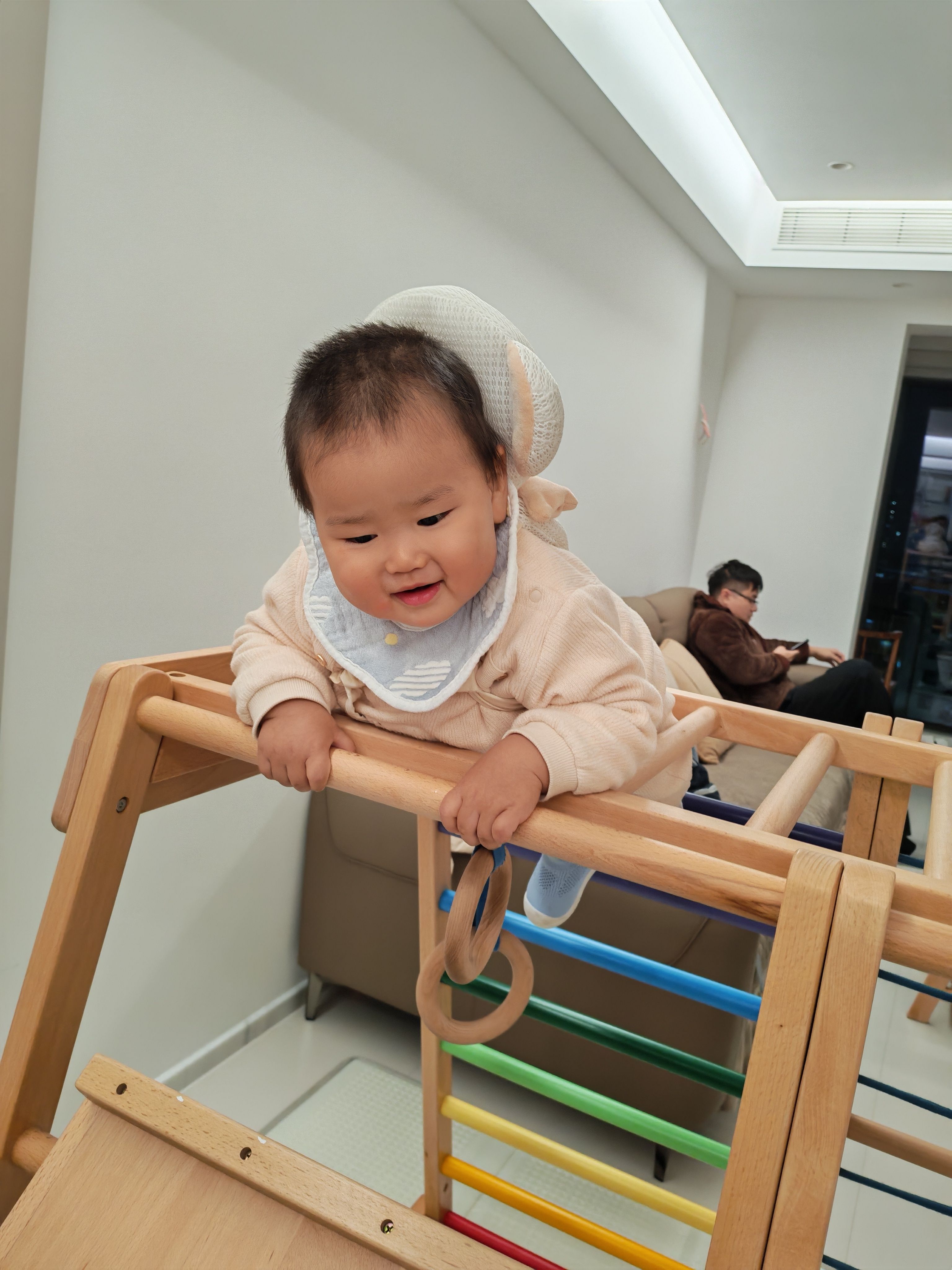 今晚和侄子汉堡玩耍时,我第一次收到了他的“差评”。原本想教他玩一个玩具,他却显得很抗拒。我意识到,强行引导或许并不对。于是换了个方式,不再要求他该怎么玩,而是当教他如此玩的同时拿起手机给他拍照。看到镜头对准自己,他一下子来了精神,在玩具旁边摆起姿势,笑得特别开心。