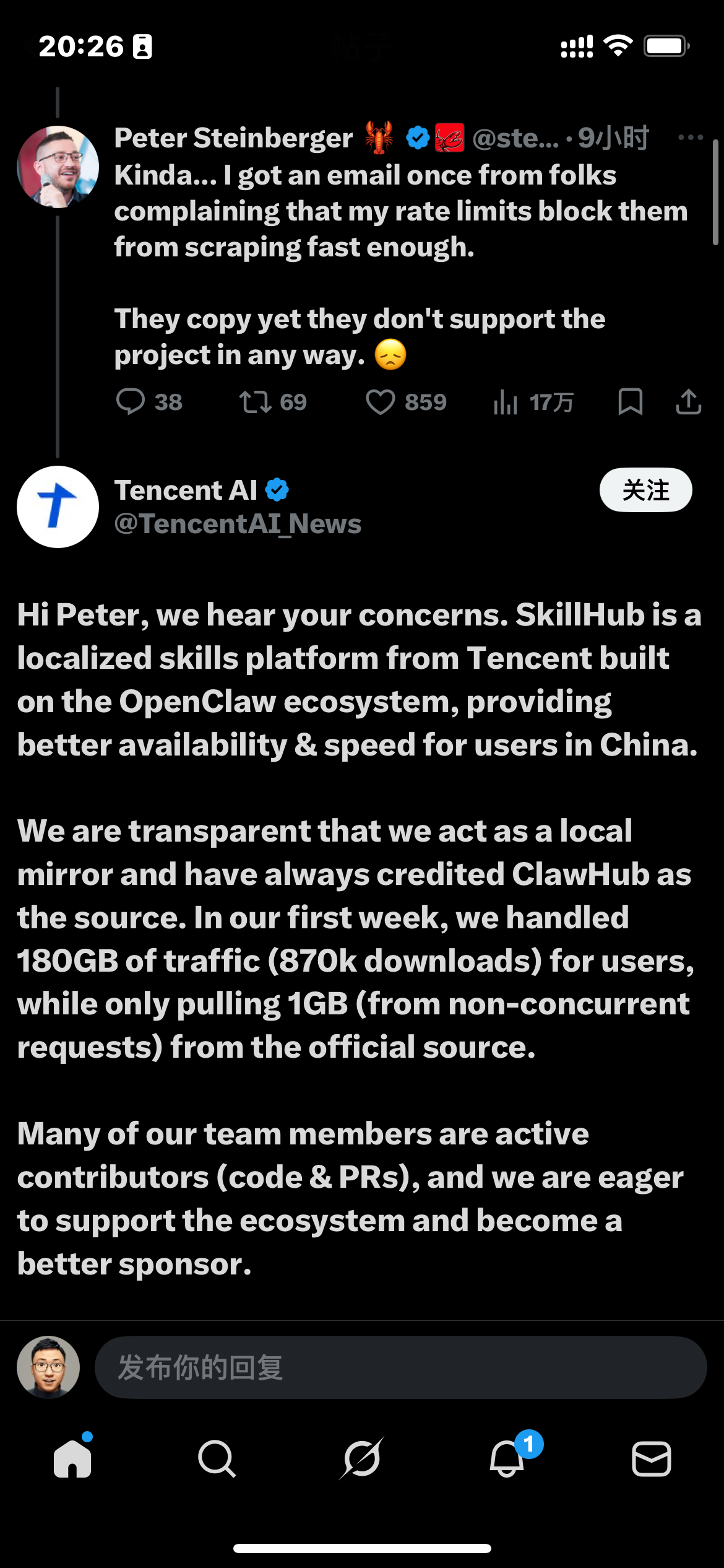 腾讯做clawhub镜像结果被龙虾之父喷了