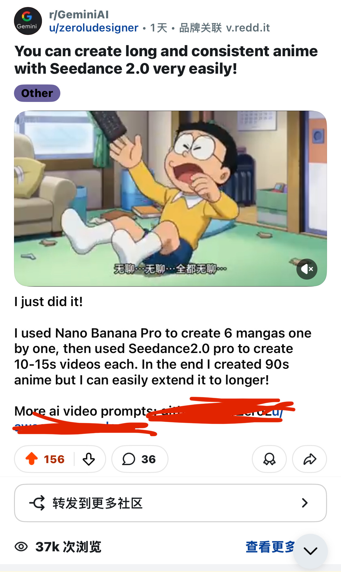 我前几天做的哆啦a梦动画在reddit小火了一把!