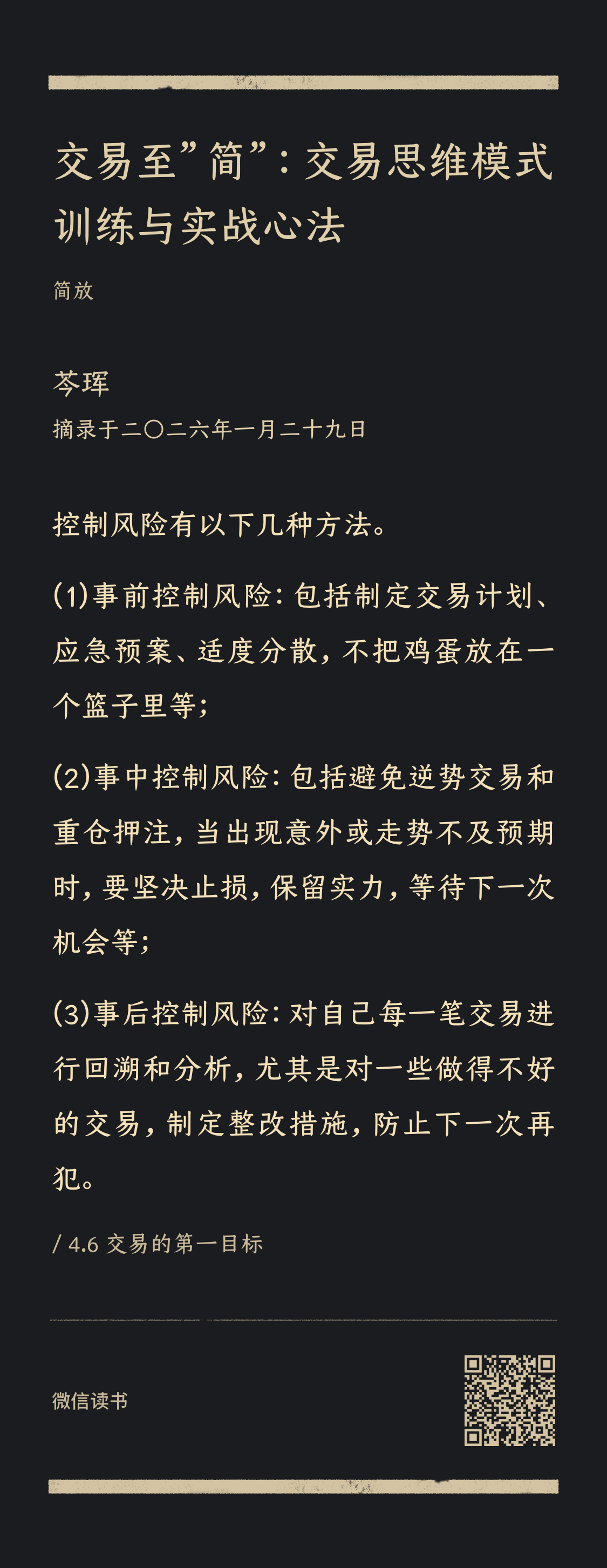 独立地看待每一笔交易 控制回撤,学会适可而止。