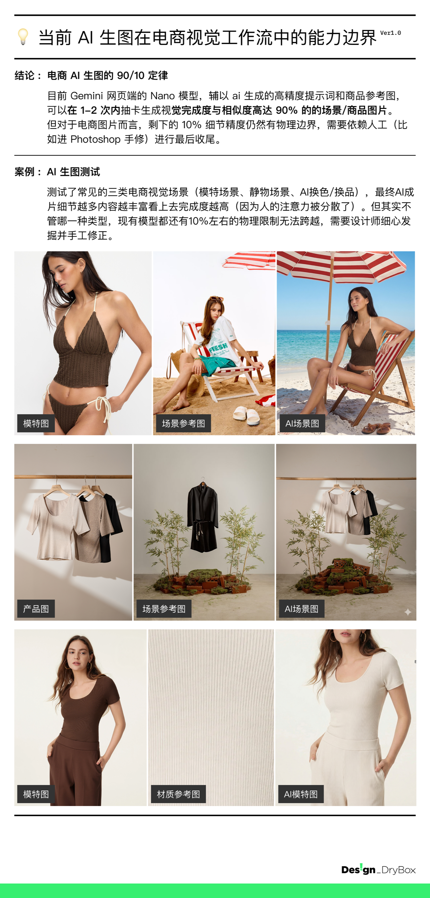 最近测试了 AI 生图在电商场景的真实边界后,整理出来一些结论和洞察。
