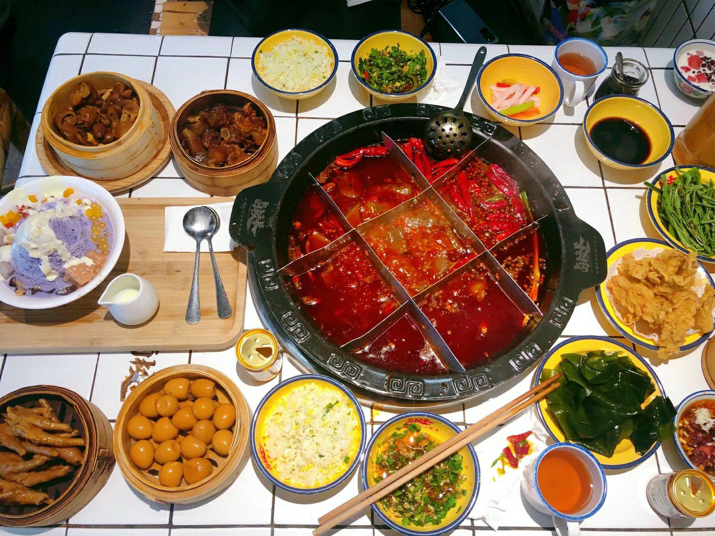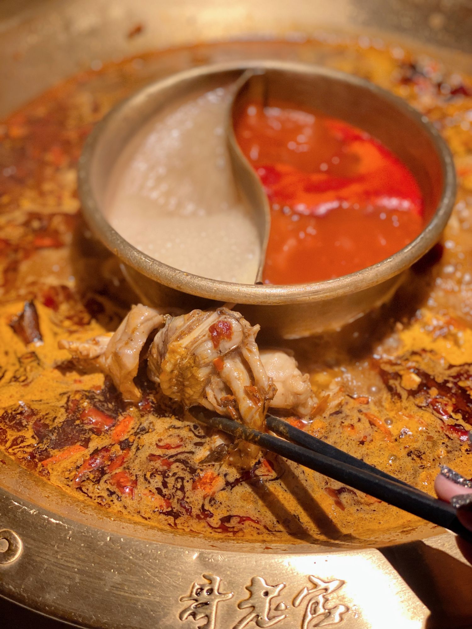 他们家火锅底料总体来说比别家辣一些 不太能吃辣或者一般的 还是点微辣吧