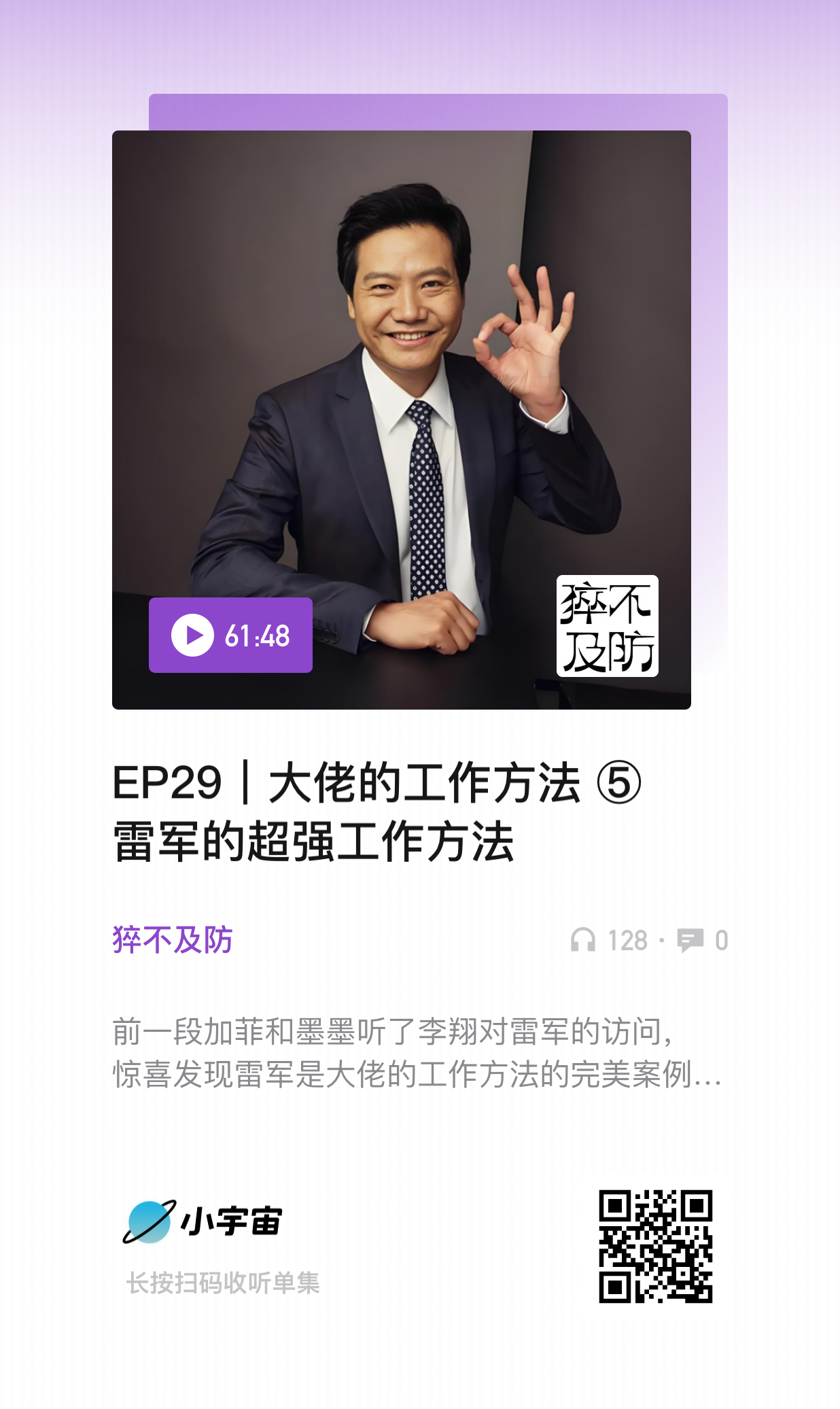 琦墨墨: 聊聊做小破播客的心路历程。 应该是2023年最后一天,意识到不按医院算法,论年的话,30岁末尾了。于是猝不及防地和@李荔枝天生立志 一起录了第一期,专门聊聊30岁。虽说准备了大纲,但聊的时候基本上想到哪儿说哪儿,就这么猝不及防地开始了。 聊完一直在忙工作的事,生生拖了半个多月,某天幡然醒悟从半夜开始剪,✂️剪到凌晨3点。也顾不上想什么名字,直接叫《猝不及防》吧,用黄油相机生成了一个极简封面,1月份发了第一期聊30岁的节目。勇敢迈出了第一步。 发完之后,又开始忙工作的事。某天灵机一动,把过去写的一篇爆款书评找出来,solo了一期讲书,这是2月份唯一的一期节目。 正是开始得太突然,也没好好想过规划问题,可是既然开始了,就寻思一下吧。 第一个方向是,恰好即刻日剧圈子让我做主理人,我想那就上点心吧,录点内容发到圈子,发了一篇征集帖意外很多人留言,赶紧录了一期《重启人生》和一期《半泽直树》。 第二个方向是,@加菲MICHI 一直喜欢听播客,读完《原则》深受启发,恰好我也看过,还有一些像他一样牛的人,值得学习。于是诞生了“大佬的工作方法”内容策划,这个从一开始就朝着系列化去做的,但也还有很多不成熟的地方。 从3月份开始,播客终于有点内容发了,出现了一期最受欢迎的单集,但不是以上提到的,而是某天又一次猝不及防和荔枝录的聊聊存钱,挺神奇的。可能是这一期给了我们正反馈,让我们觉得这个草台播客能继续做下去,于是开始三人碰头共商大计。 第一次碰头地点📍是一个免费录音棚,研究了半天设备怎么用,以为研究好了就录了一期“生活主线”,但出来效果感觉不如iPhone语音。不知道是不是我们的一致错觉。 4月份和5月份也是吭哧吭哧各发了两期节目,主要磕了一下“大佬”,把芒格老友巴菲特也录出来了。此时又发生了一个转折点,我个人的转折点,我离职了。 就这样,瞎搞了小半年的播客终于迎来了它的⏩高产期6月份,因为我有了大!把!时!间!可以出去玩以及顺带约朋友录个节目。又是访谈小红书家居博主和短剧制作人,又是连麦合作过的作者经纪人,又是串台播客届前辈们。 到了7月份“迷途知返”赶紧补了一期日剧节目和大佬节目。就在这个时候,我、荔枝、加菲共同决定,不能再这么乱套了,播客要定期更新,每周六发。选题和剪辑都要做些升级,思考我们能提供哪些价值,再聚焦一点,至少让《猝不及防》看起来像是个正儿八经的播客。 此时,小宇宙播客《猝不及防》💜粉丝突破1000,要按三个月之内算新手期,这已经八个月过去了。而我才有一种刚刚开始的感觉。 💡8月份就是开始步入正轨的一个月,定期更新,分工明确。只是从实际情况来看,每周六or周日发,更稳妥一些。 我们把这个播客当作一个播客实验室,会尝试各种有趣的选题,个人成长、生活方式、文化现象。小宇宙有一个功能叫做内容专题,可以分门别类,避免杂乱,于是单独拎了3个专题: ⭐️“一起来读书” ⭐️“一起看日剧” ⭐️“大佬的工作方法 第一季” 一个猝不及防开始了的播客,能做到定期更新已经挺不容易。希望我们都会越来越好啦。