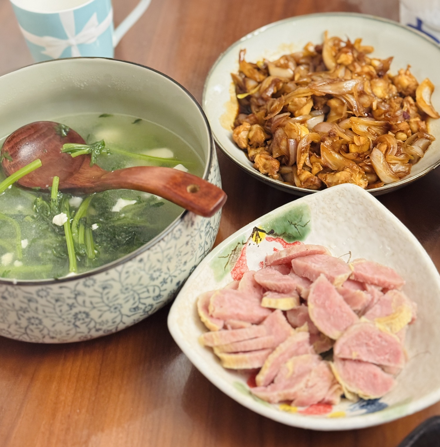 晚餐🥣茼蒿豆腐汤➕洋葱掌中宝➕蒲包肉