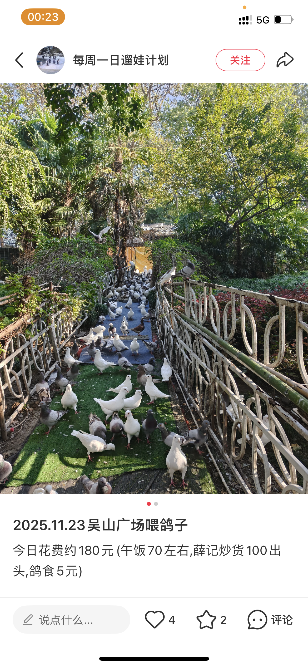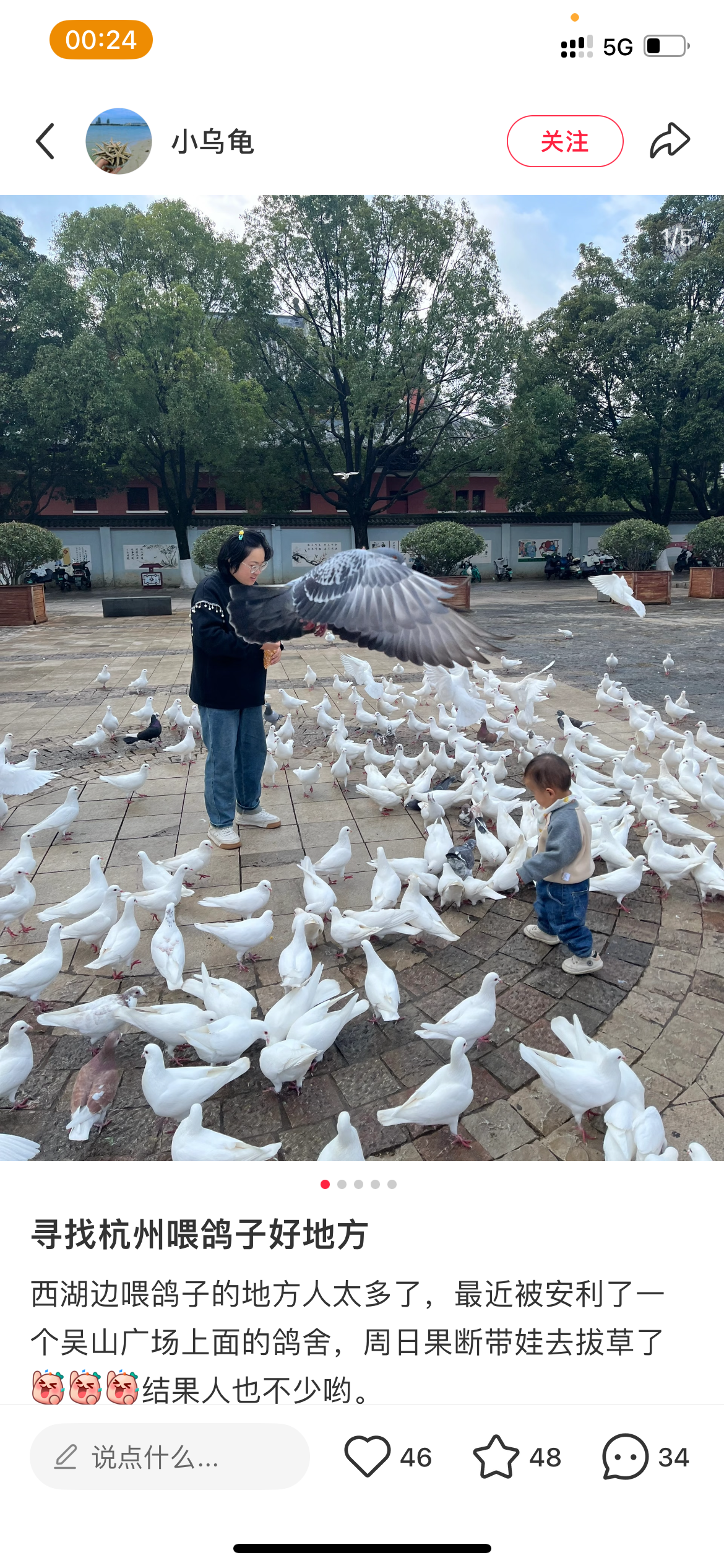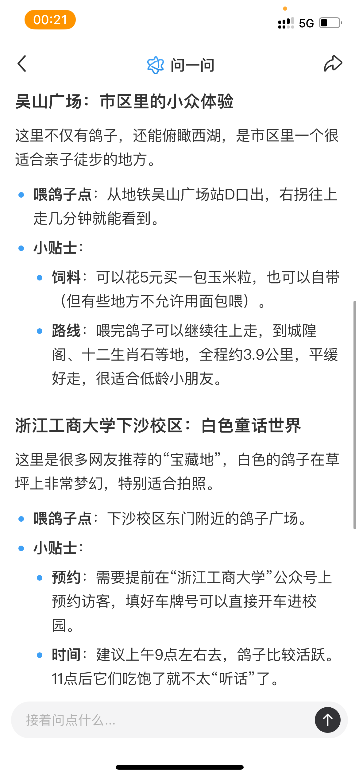 回杭州以后,我已经查好了能喂鸽子的地方。