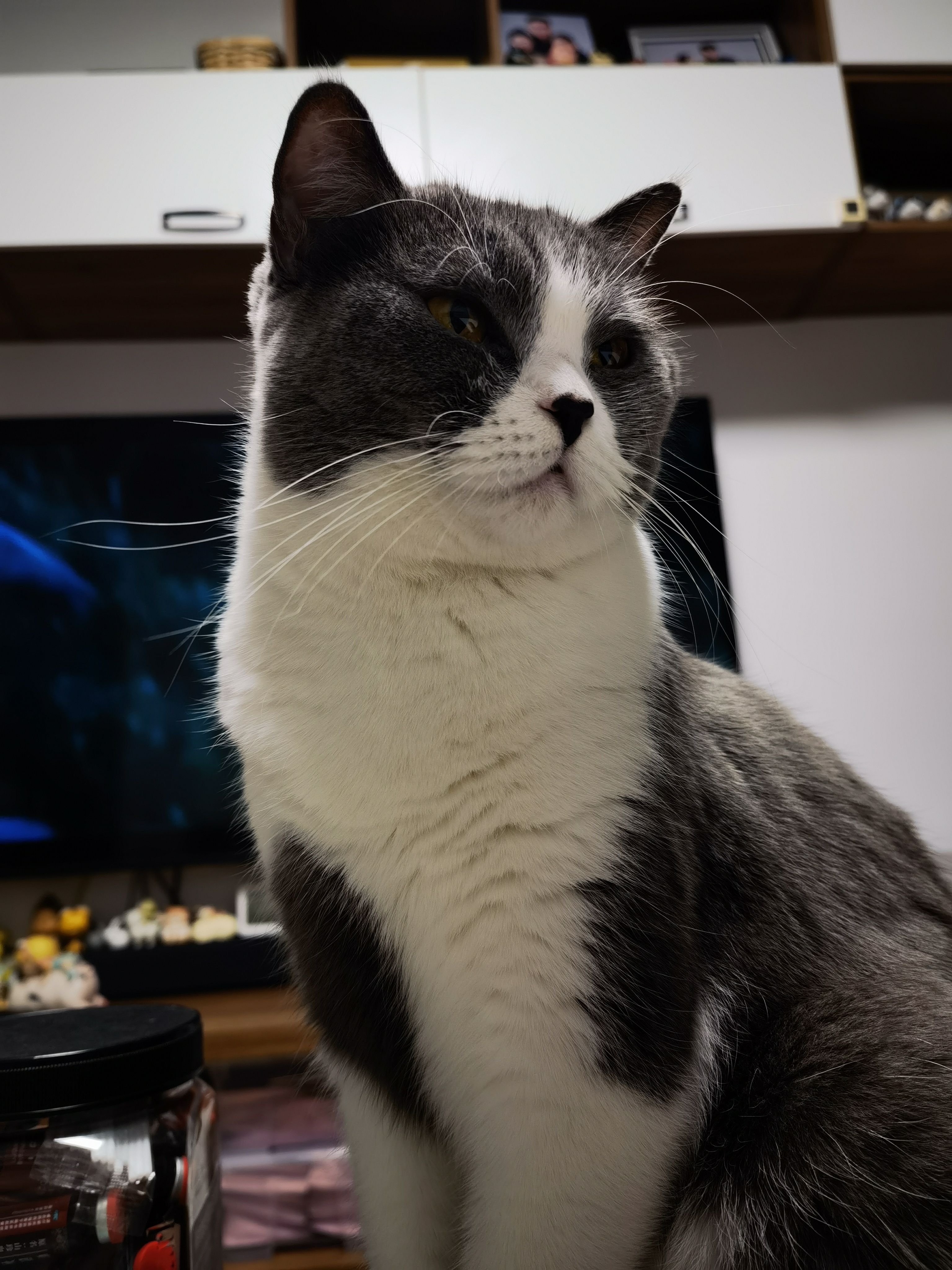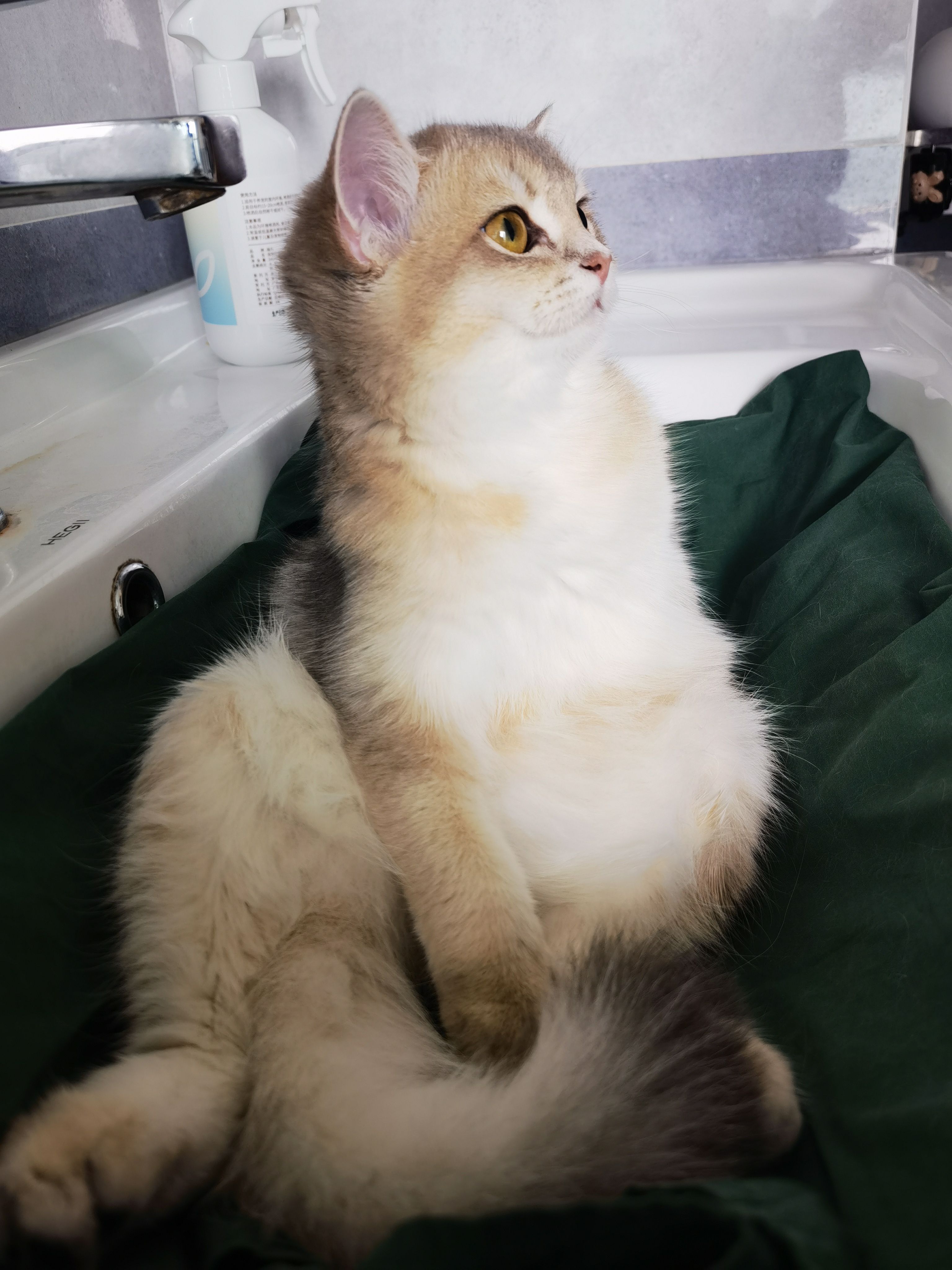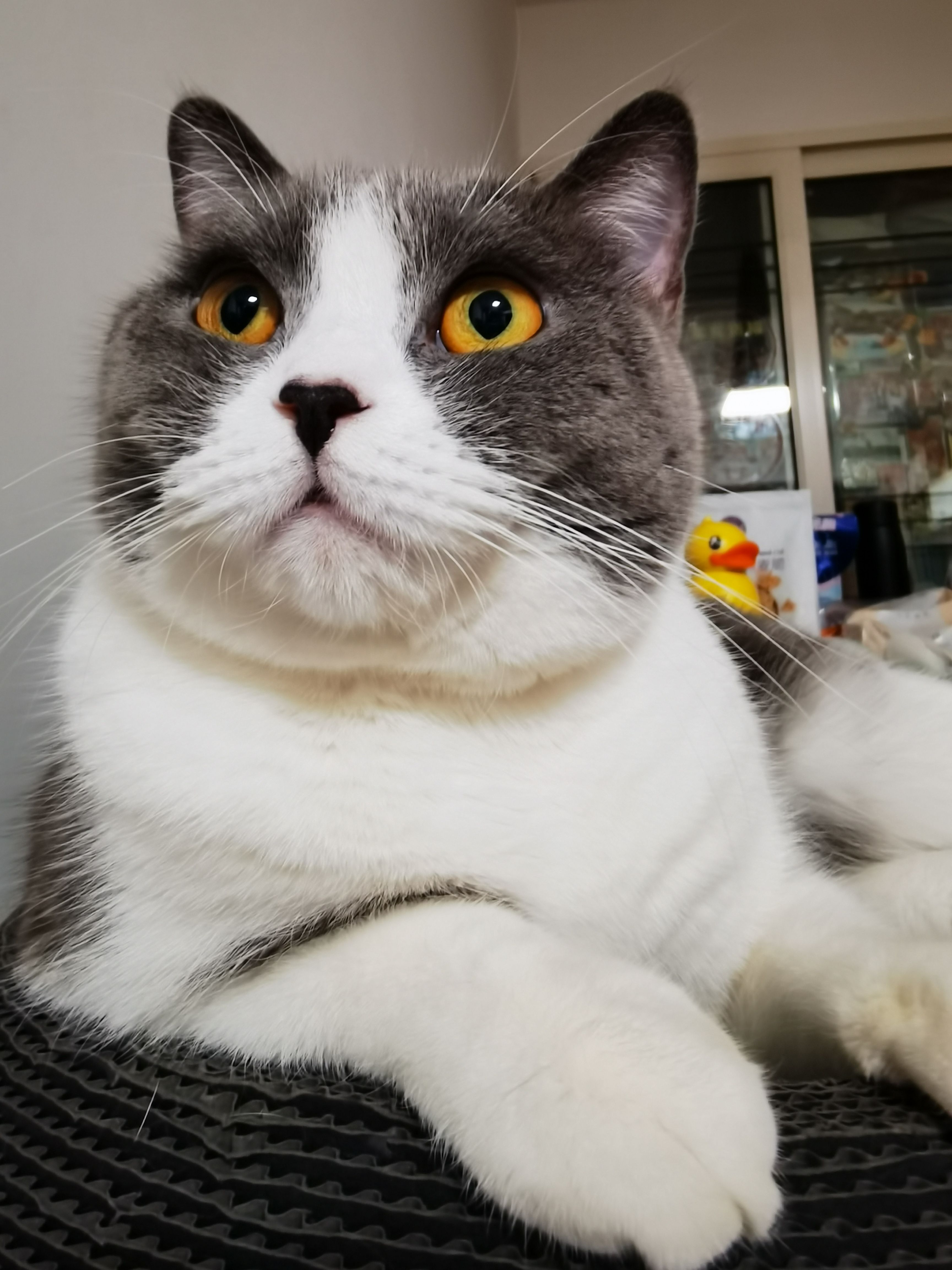 坐在喵巴克旁边,突然听到猫猫叭唧唧唧嘴的声音。我就去看。伊伊在喵巴克的1楼。阔爱