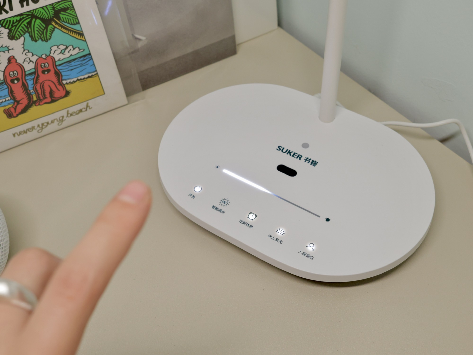 💡 台灯的控制也非常的简单,所有操控功能都清晰的标识在控制面板上,触控操作和手势操作都有。一扫就可以开关灯,非常方便。