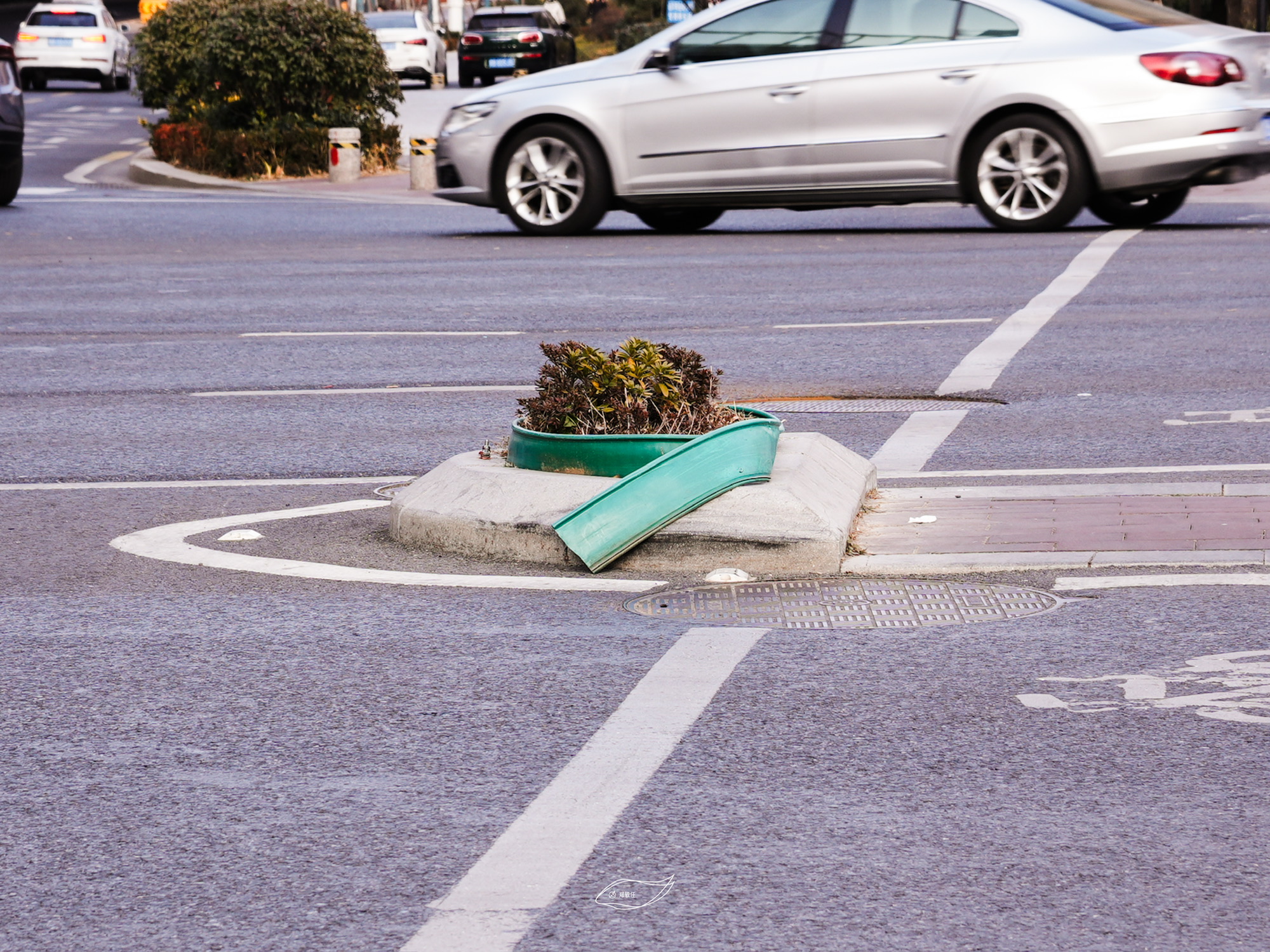 上了岁数都要戴围巾,绿化带也不例外。