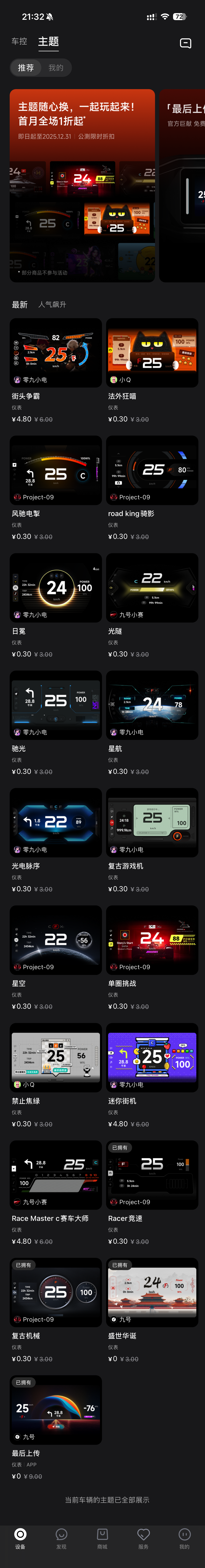 九号电动车出车机皮肤了!新的利润增长点? 公测阶段1折,全部买下😄