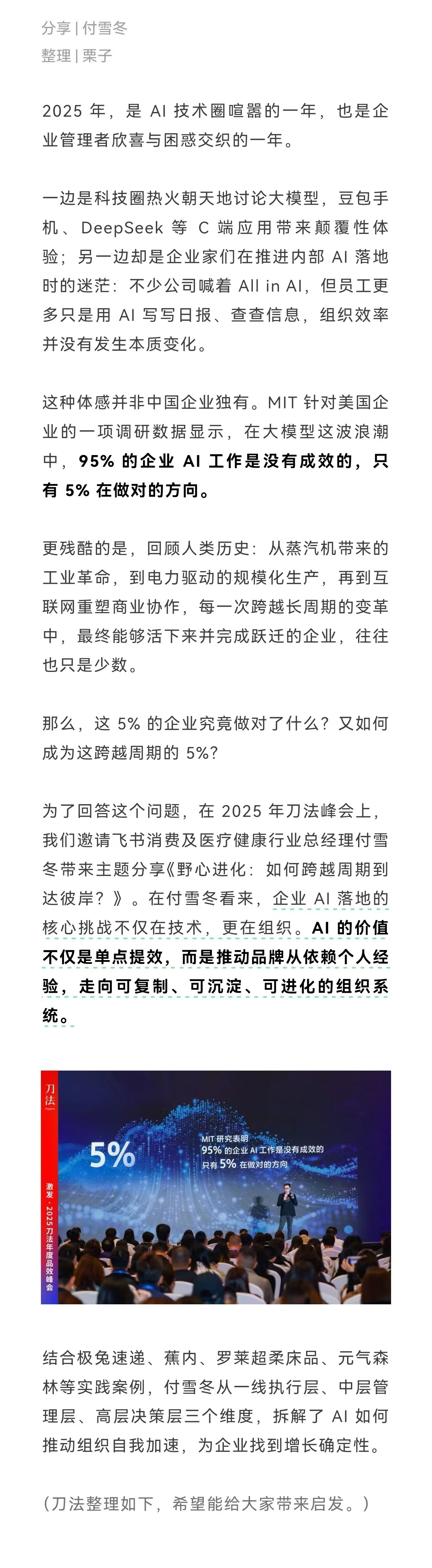 MIT调研显示,95%的企业AI工作是没有成效的,只有5%在做对的方向。