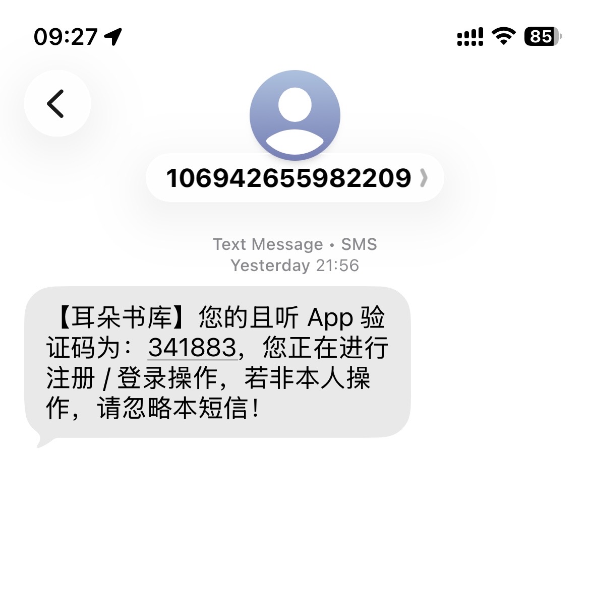 下载了老罗的一卒听库 App,登录接到的验证码。