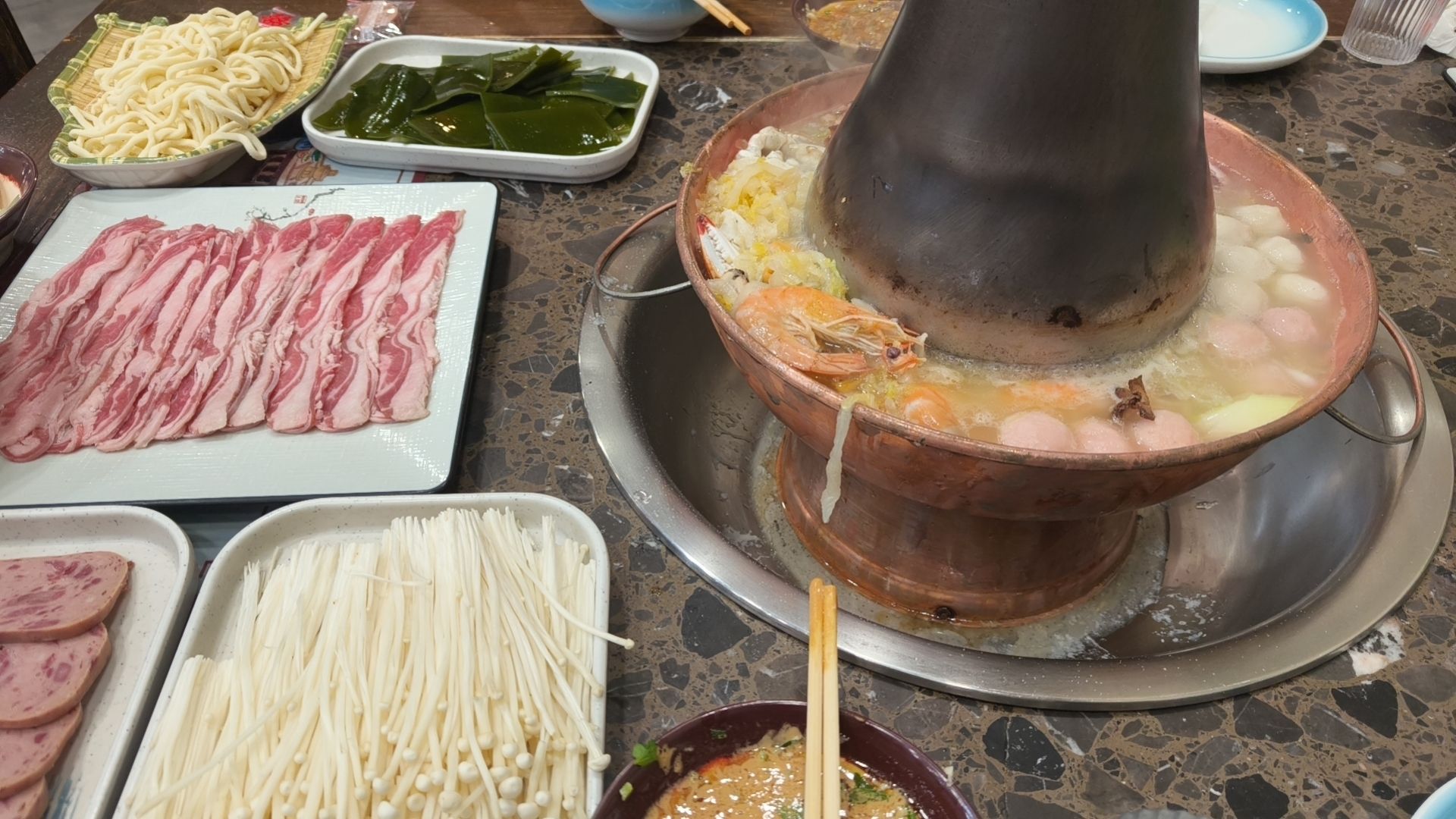 海鲜铜炉涮肉,太顶了