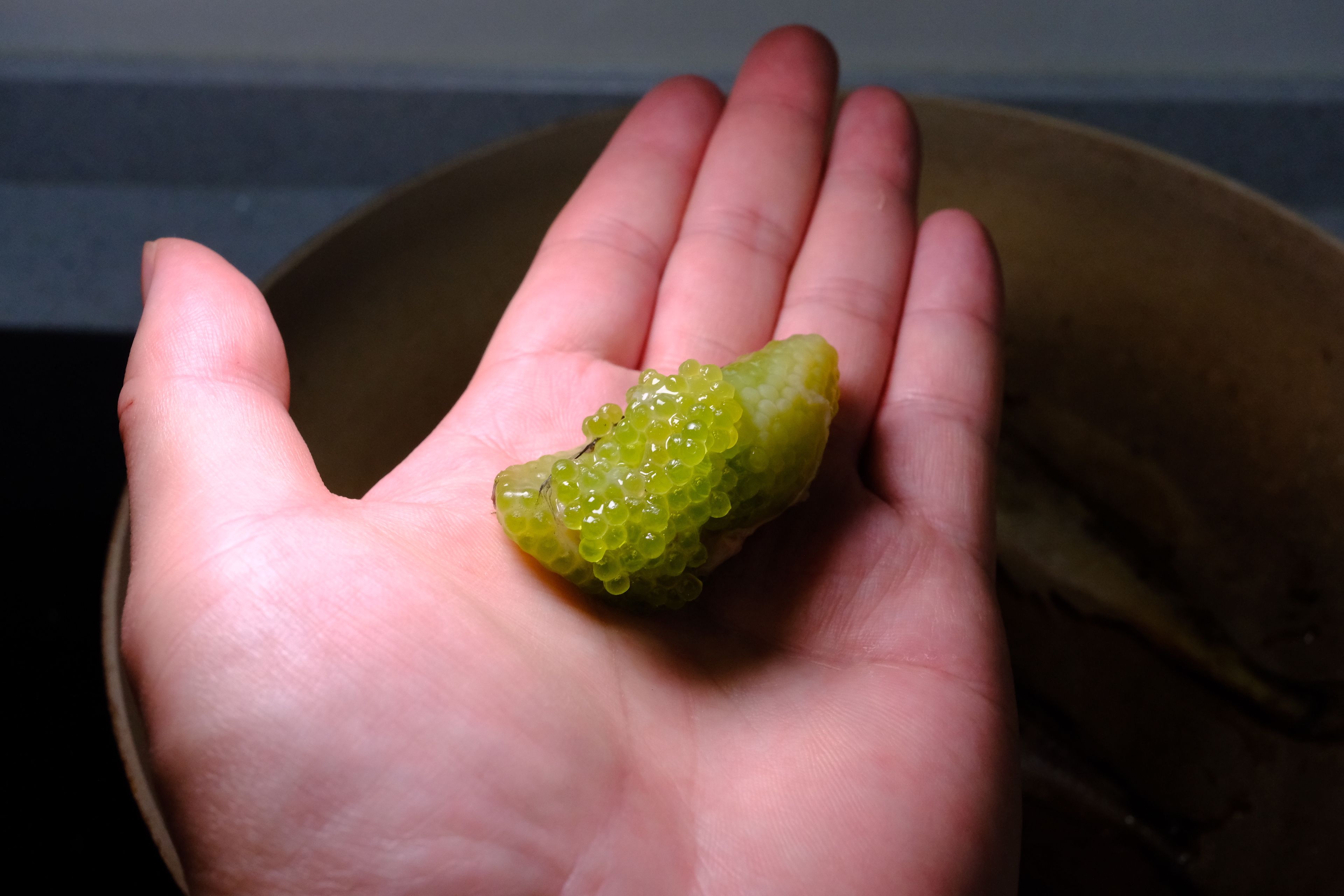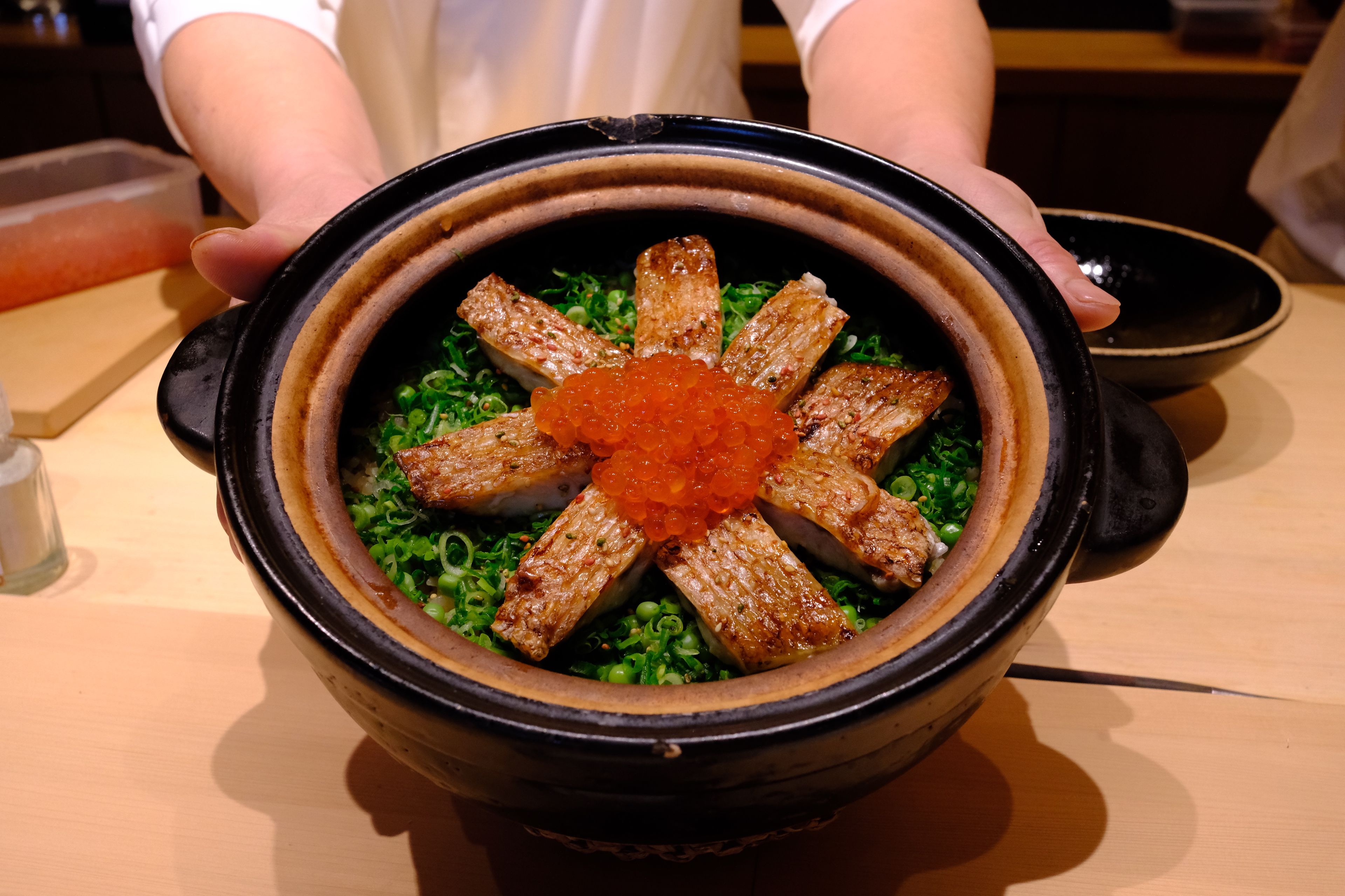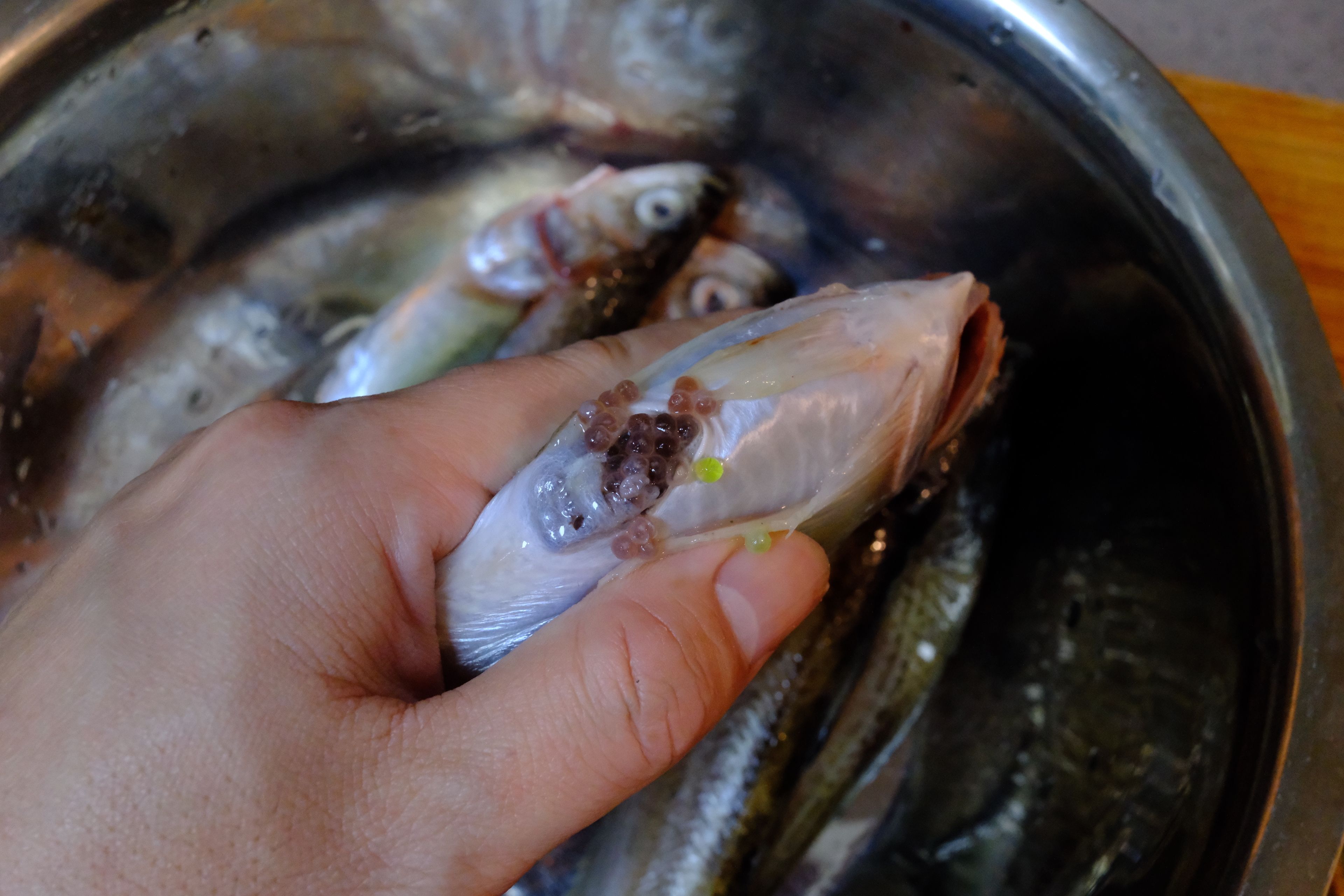 有一种叫做ハタハタ(鰰/日本叉牙鱼) Arctoscopus japonicus 的日本海特有鱼种是我非常喜欢的鱼类食材,可惜我国沿海没有分布,日料店也很少会考虑进货。这次Eric总搞了一批平靓正的朝鲜东海货,火速买了一些尝尝看。竟然个个带籽,ハタハタ的鱼籽有各种不同的颜色,非喜美丽。它有一个特别的名字叫做ブリコ(鰤子),关于这个名字的由来有很多故事,我比较中意的是和战国大名佐竹世家有关的由来:在著名的关原之战中,佐竹父子因为立场不同,在战争中选择了中立,但之后还是遭到了德川家康的记恨,被削了藩,从富饶的太平洋侧的常陆(茨城县)转封至苦寒的日本海侧的出羽久保田(秋田)。在常陆地区正月食用ブリ(鰤鱼)是传统,可来到秋田之后ブリ没有了分布,为解“莼鲈之思”便用了当地特产的ハタハタ替代,同时因为怀念ブリ,所以将鱼卵称为“ブリコ”。而在秋田这种传奇的鱼类也几近灭绝,后来采用了非常严格的禁渔管理,产量稍有恢复,但依然是少得可怜,未来如果可以吃到,也是要且吃且珍惜了😾