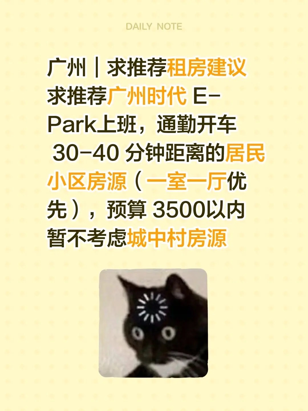 求推荐广州时代 E-Park上班,通勤开车 30-40 分钟距离的居民小区房源(一室一厅优先),预算 3500以内