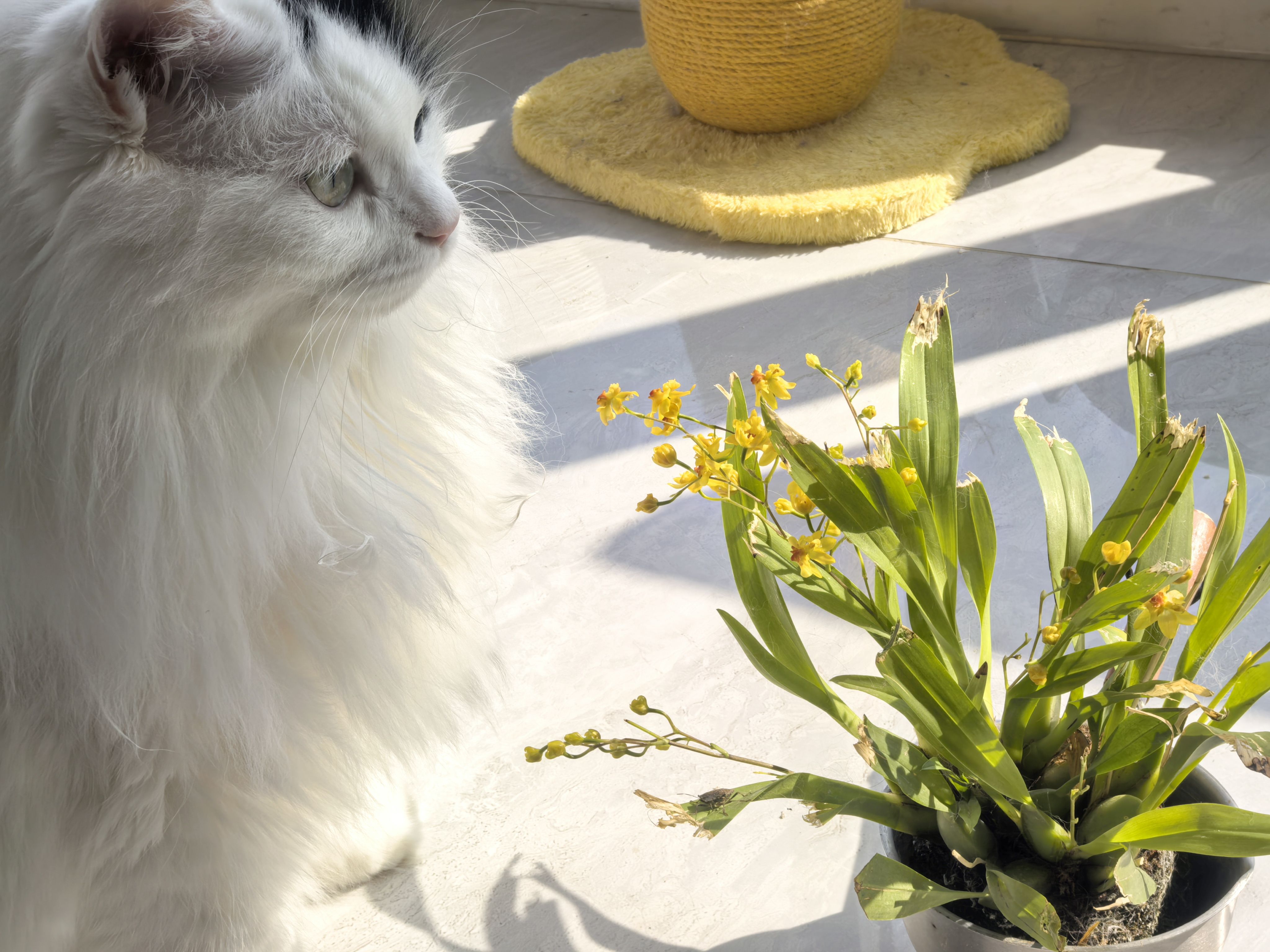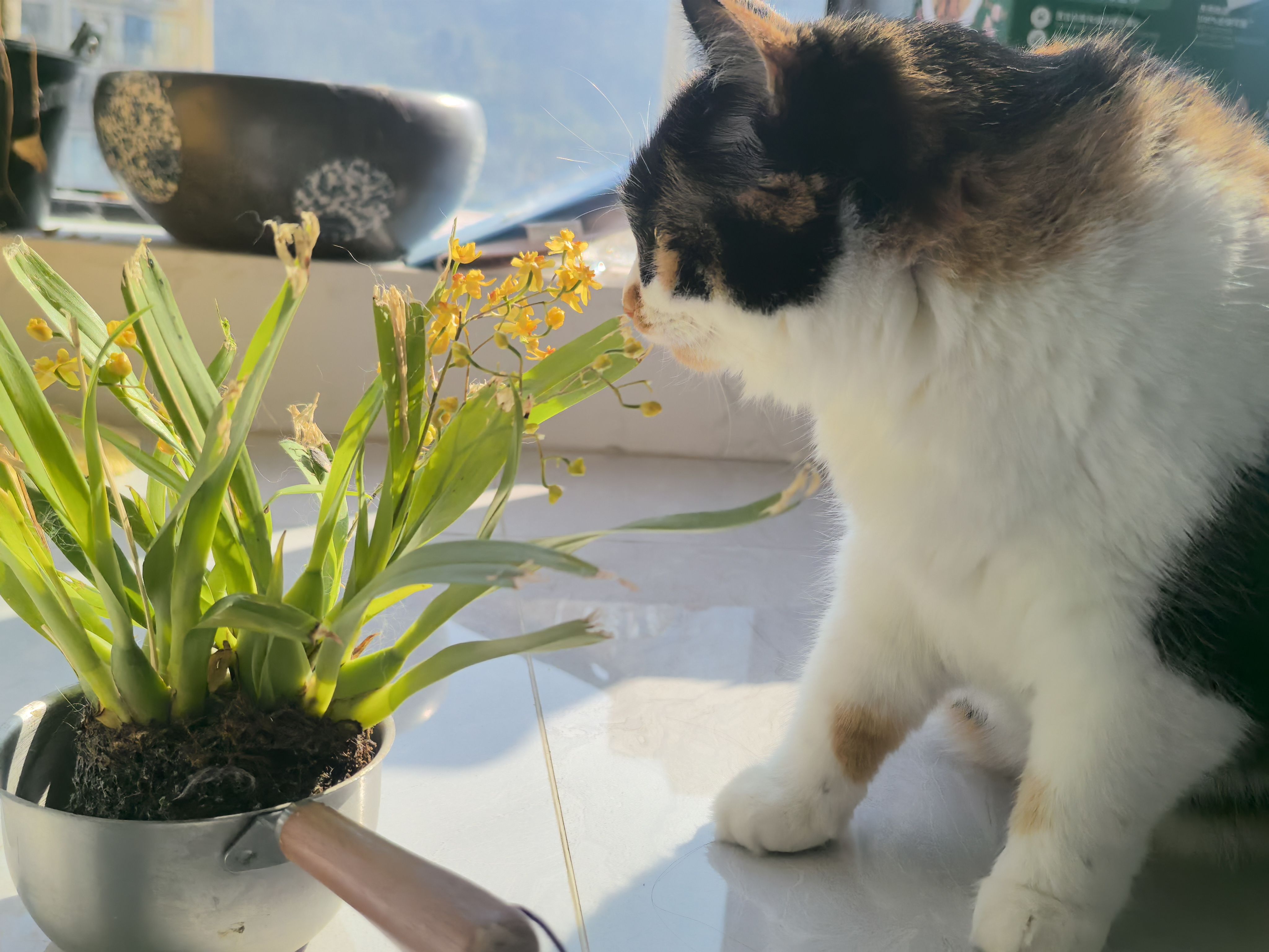 24年11月买的文心兰,到了以后连盆都没给它一个,养养就开花了,很好闻的香。开了以后放阳台没管过,就偶尔喂鱼时给它泡泡澡。
