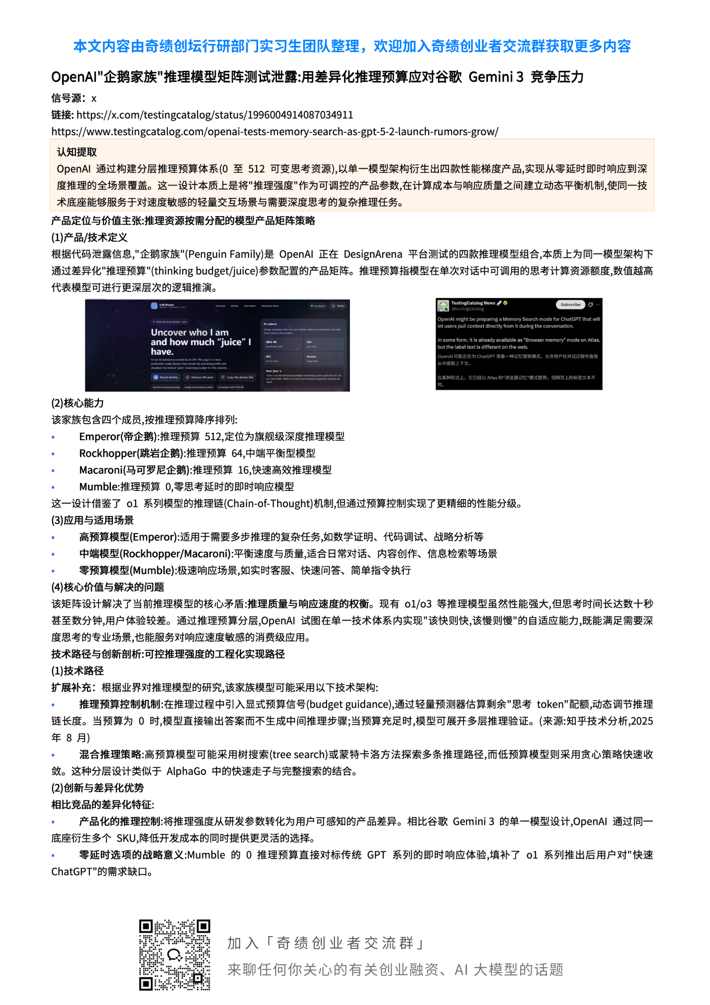 · OpenAI"企鹅家族"推理模型矩阵测试泄露:用差异化推理预算应对谷歌Gemini 3竞争压力