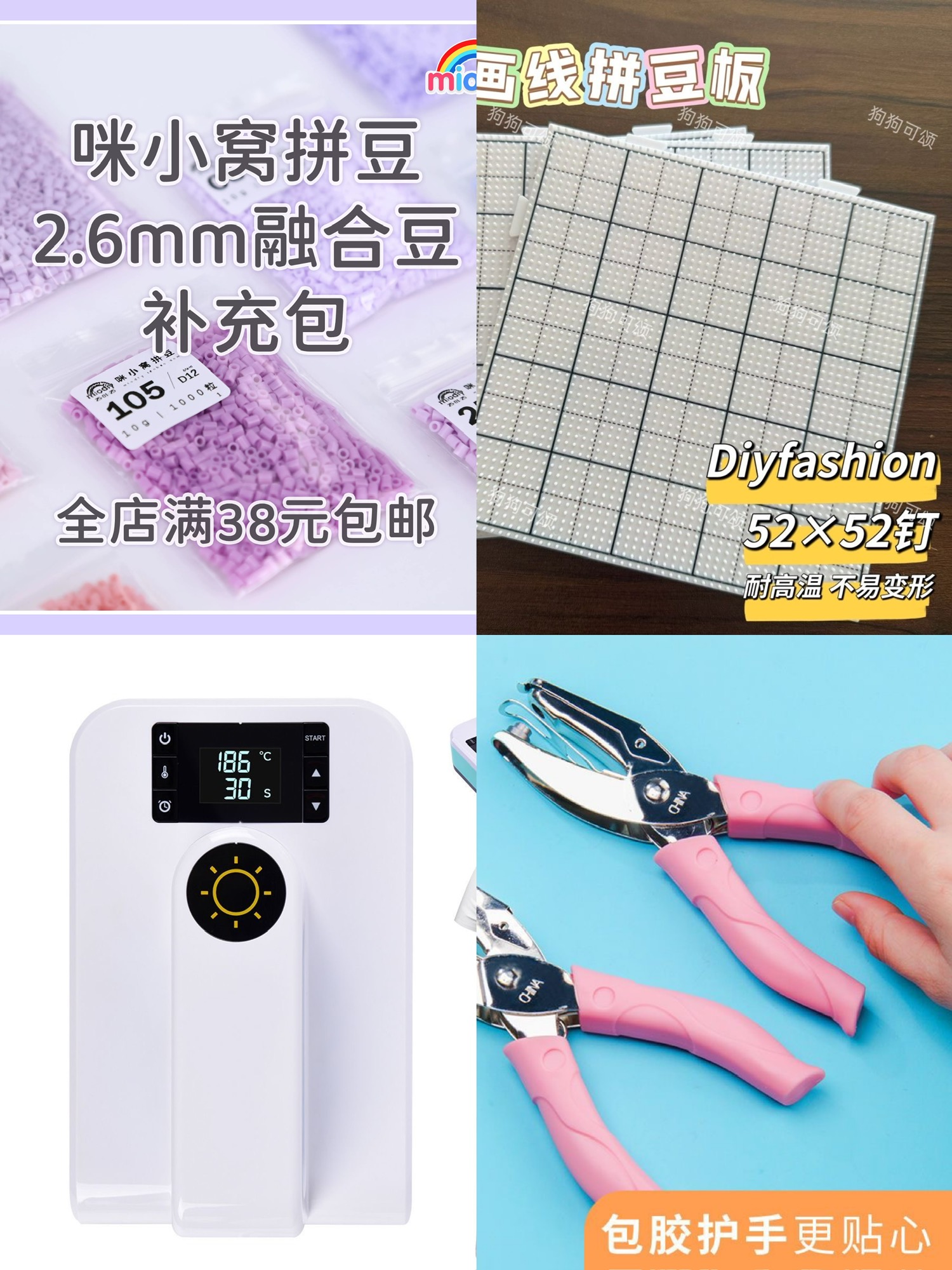 4. 咪小窝拼豆+百塑拼豆板+拓普科烫画机+1.5mm打孔器
