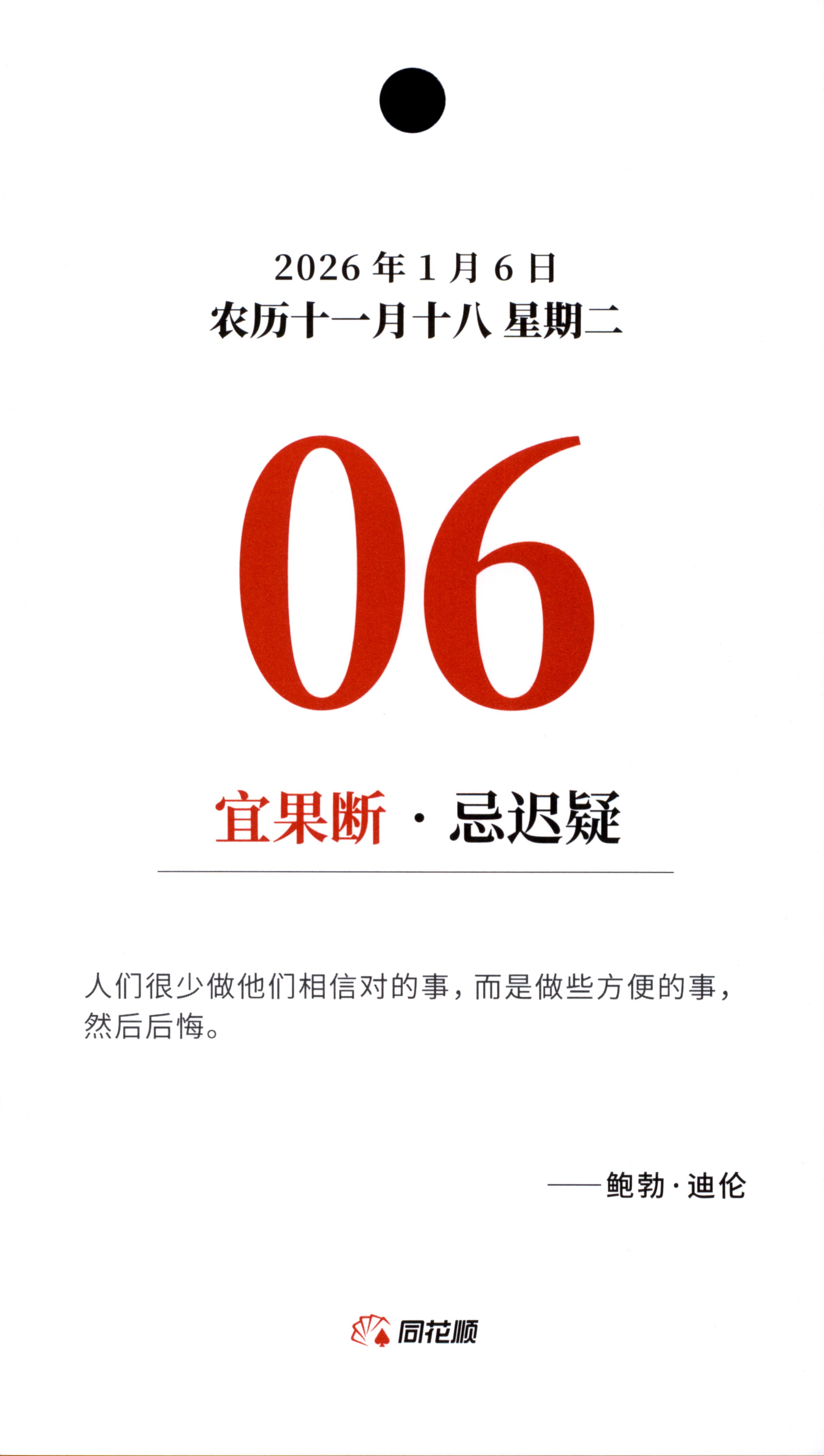 2026年1月6日 冬月十八 星期二