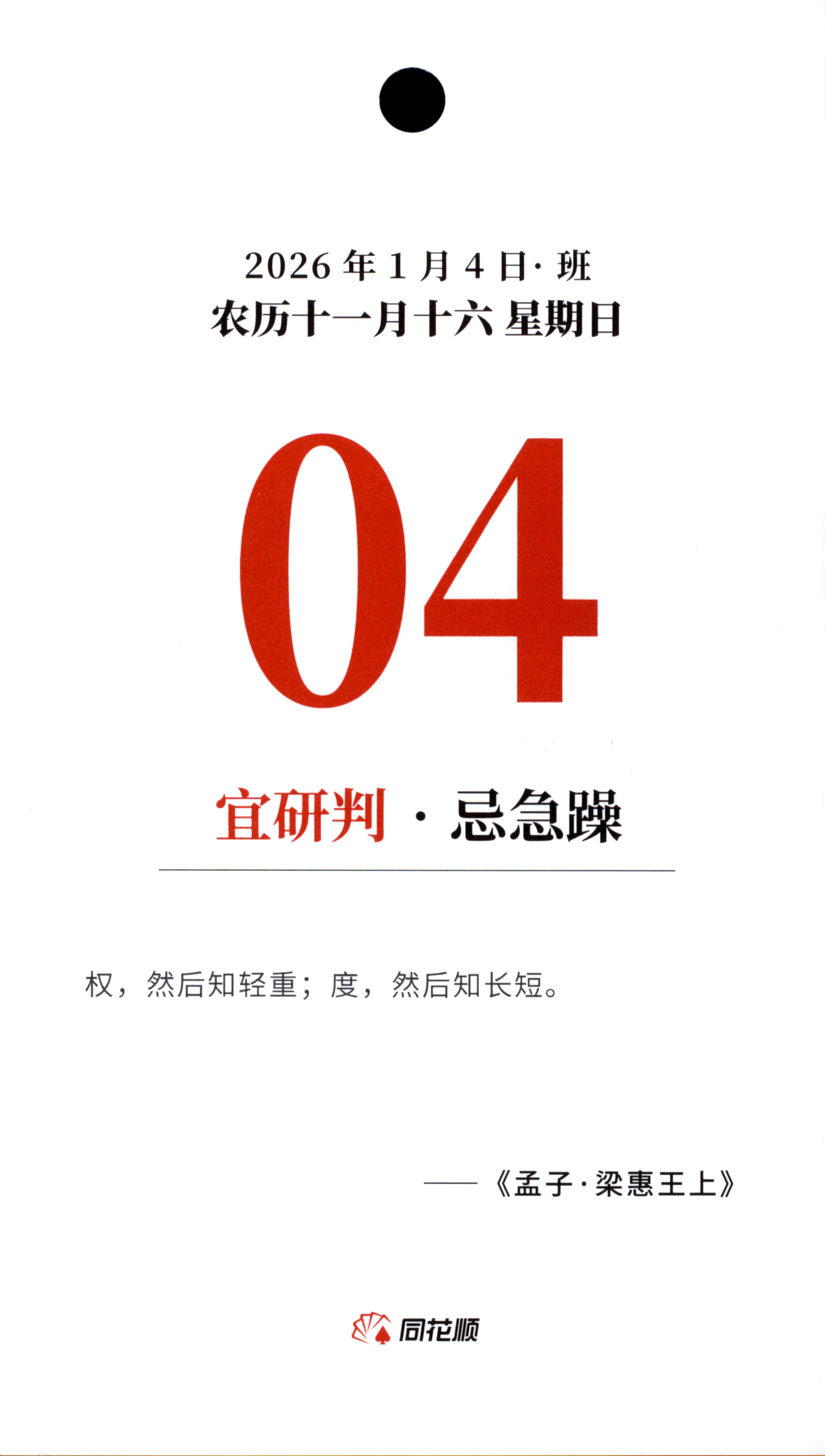 2026年1月4日 冬月十六 星期日