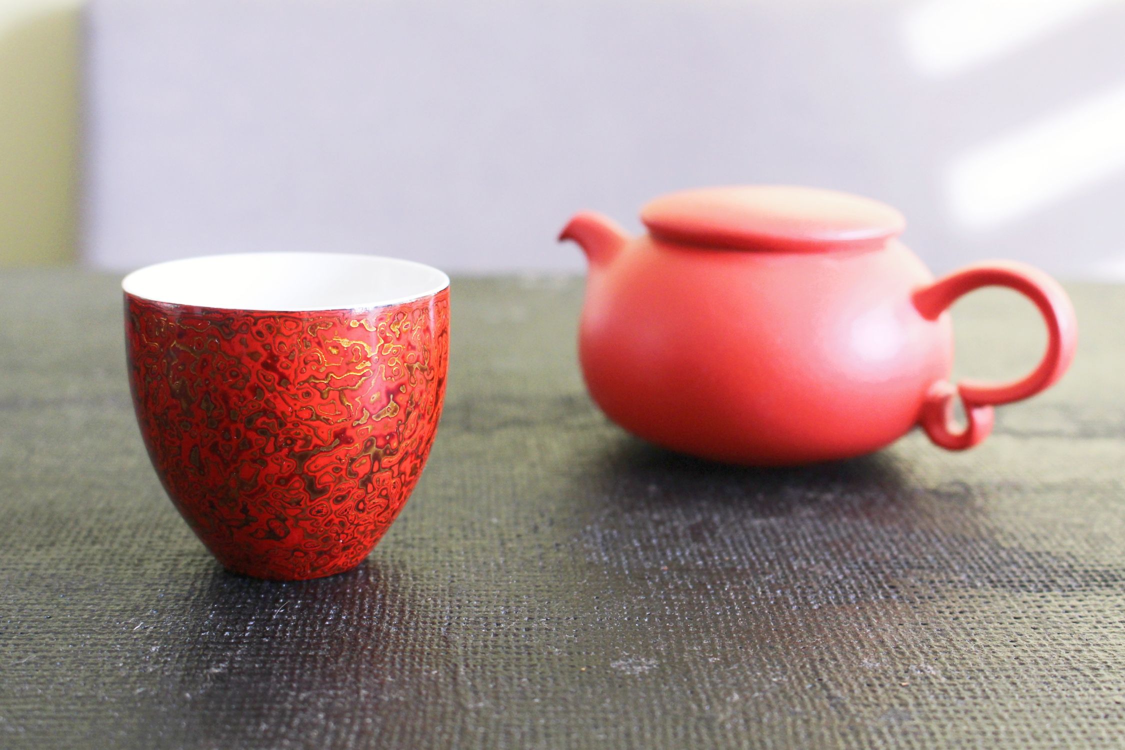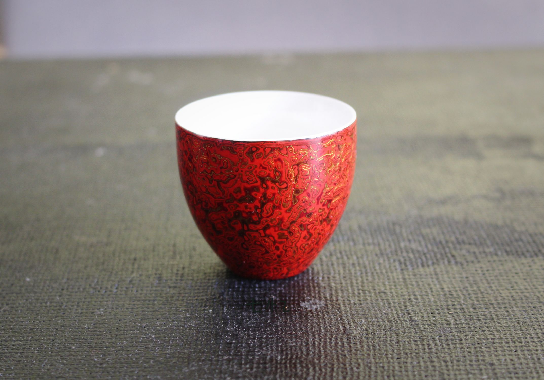 大漆白瓷杯