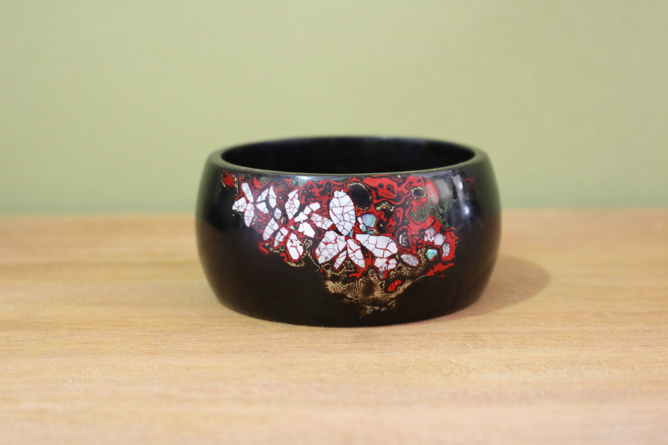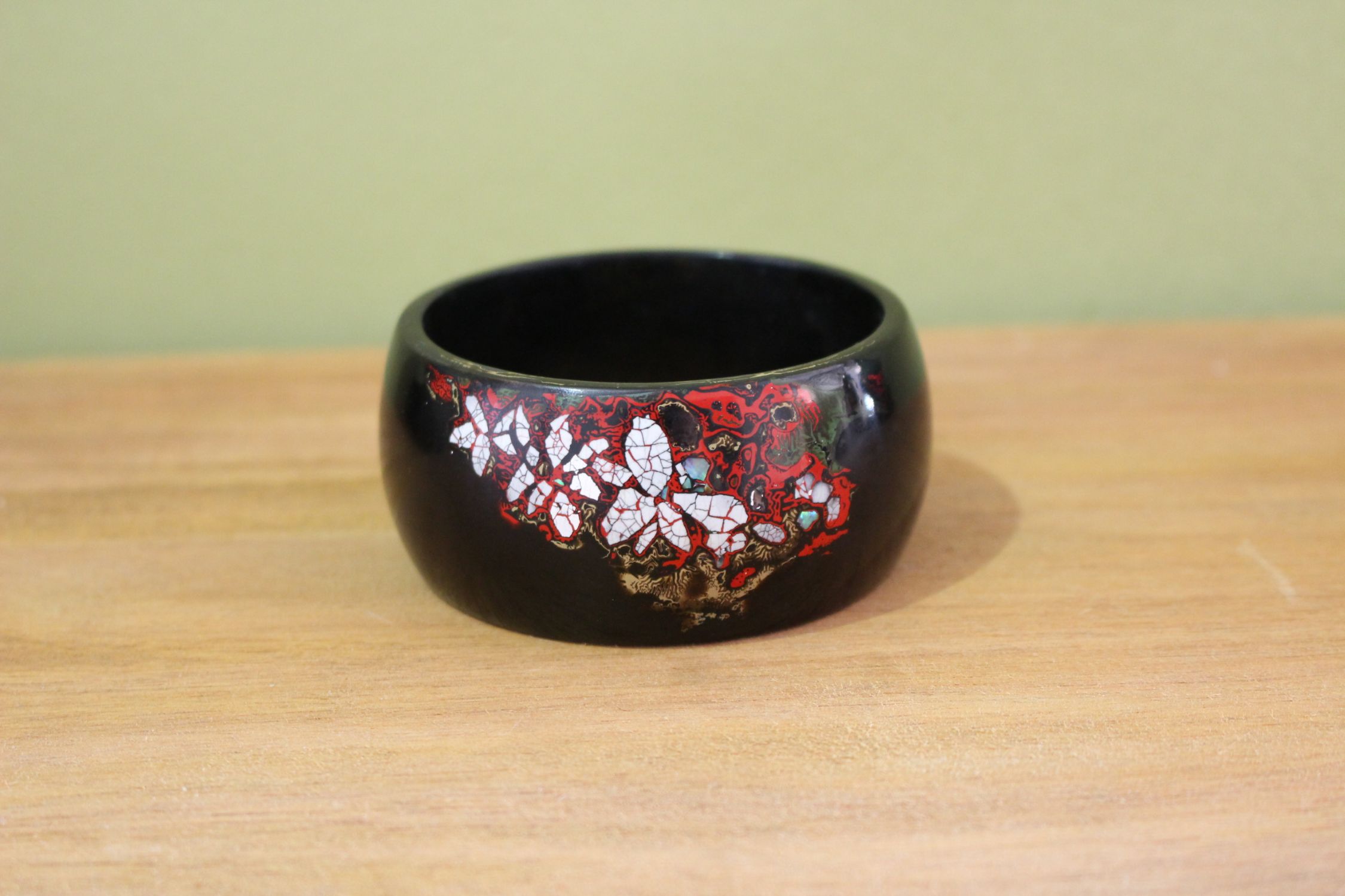 我教我朋友做的大漆手镯,后来他没做完,一直放着,让我收尾。拖了好久,这几天总算收尾完成寄给他了