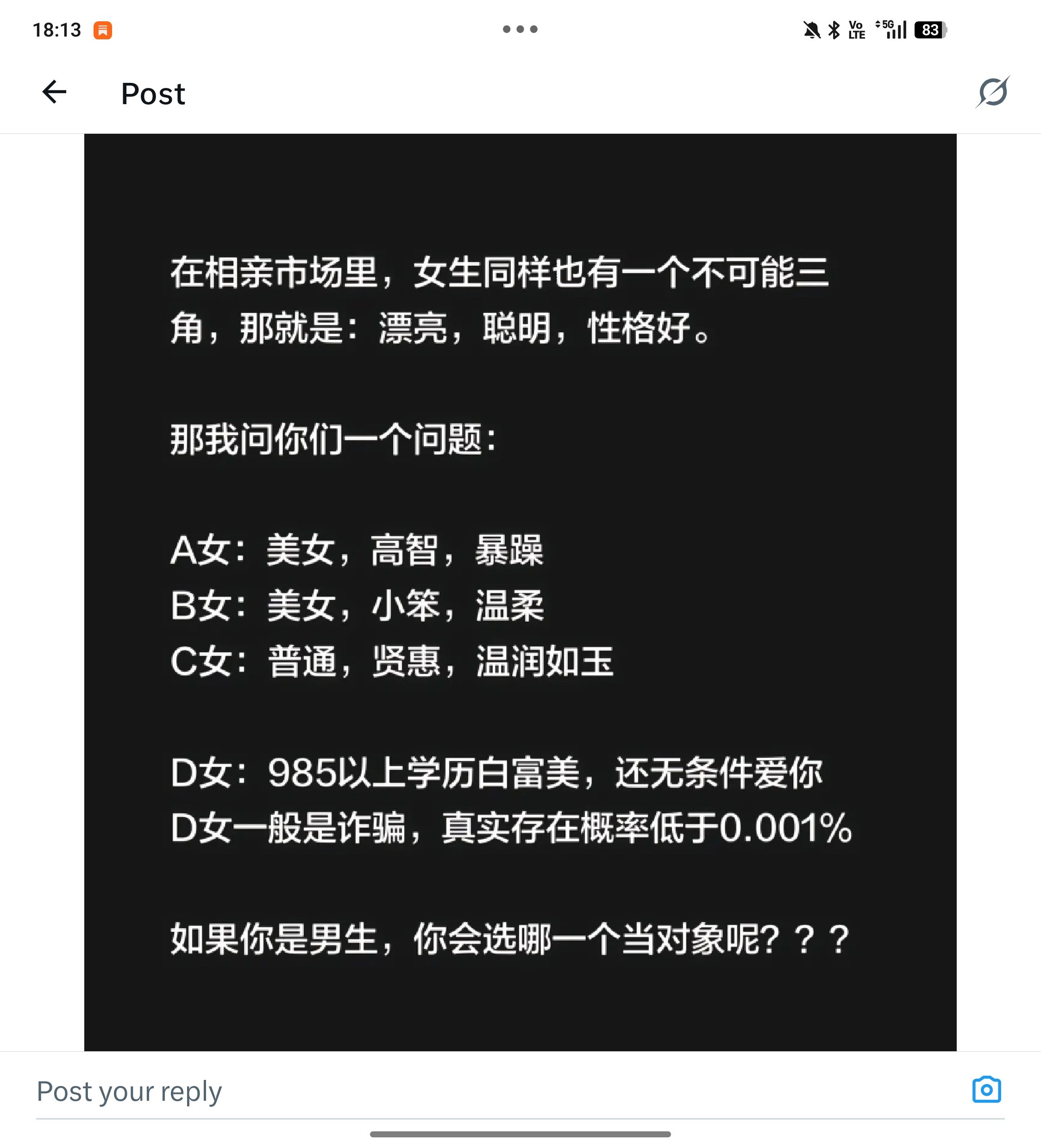 原因是a女男生驾驭不了,大概率被绿帽,这可太有道理了😂 有钱有吸引力有脑子必多偶倾向,不分男女。