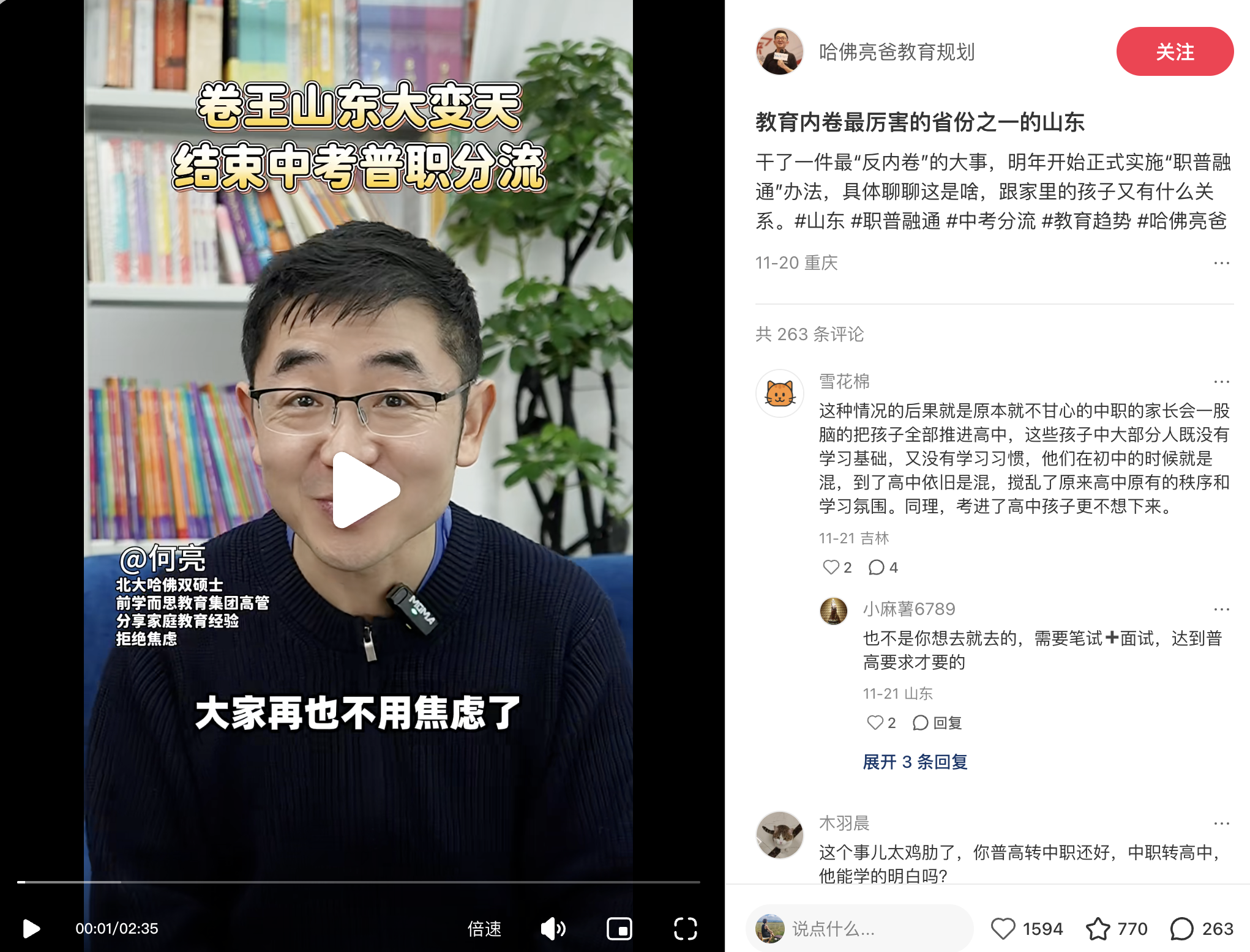 -mingyan-: 有朋友给我发了山东结束中考普职分流,我就这样看这不是好事吗,两边能互换,不是所有人适合去读书,学点有用的技能出路搞不好比满大街泛滥的大学生好。 我朋友说我太天真了。