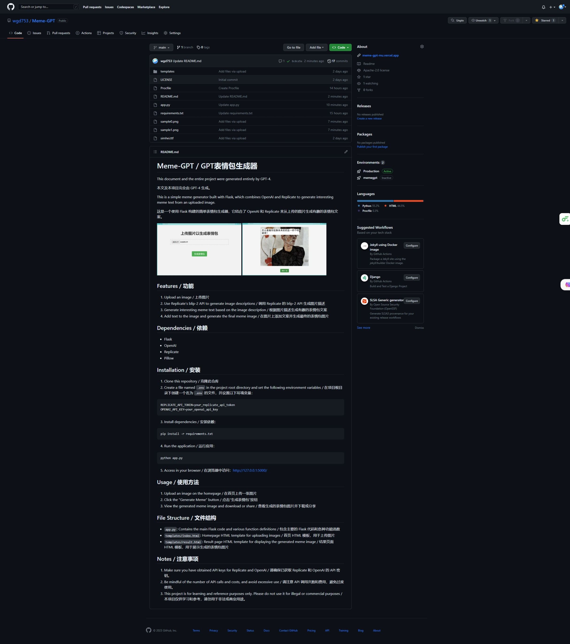 5. 将上列思路细化并描述给GPT4,然后不断调试,最终生成可用的代码和README