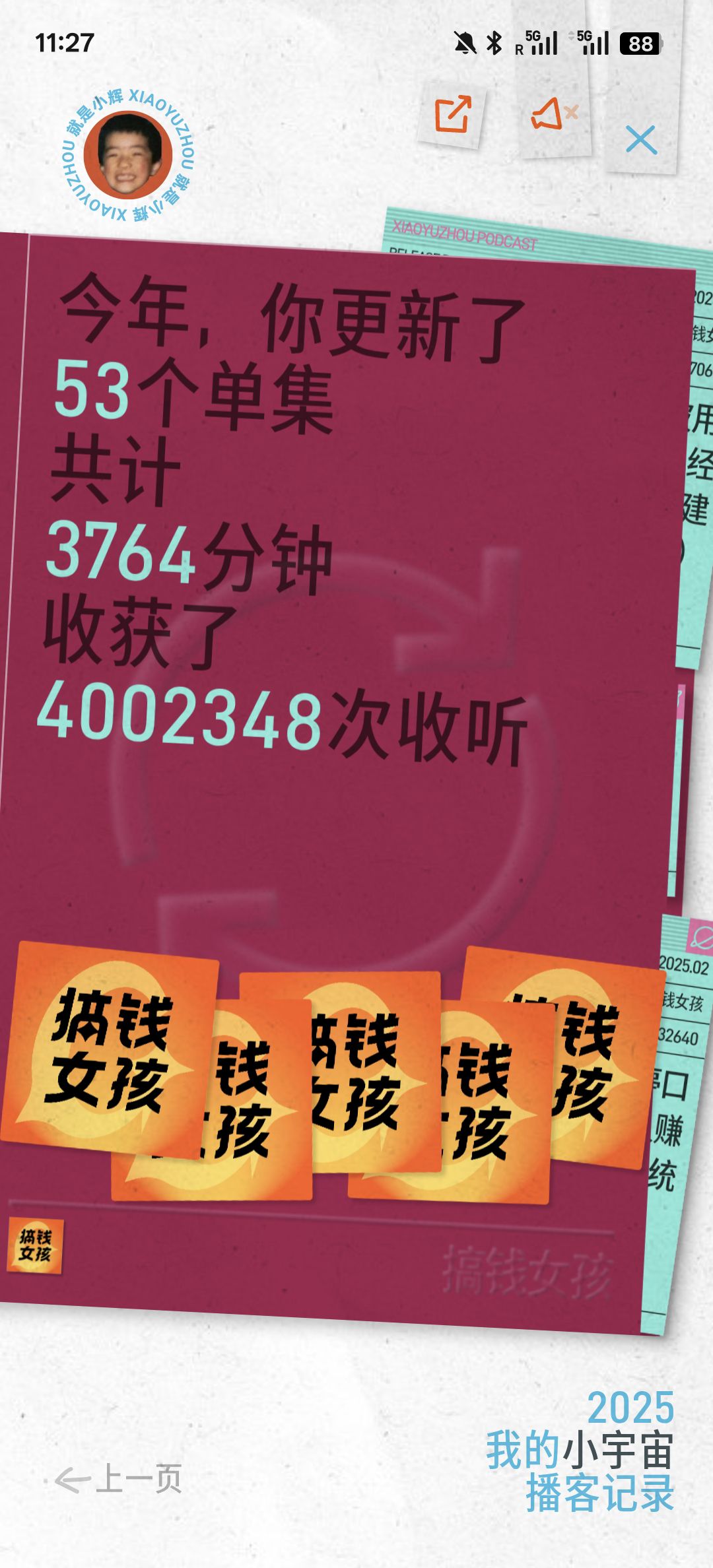 此刻,我的小宇宙APP上显示收听时长为1894小时41分,能绕月球两圈、海王星118圈。我不禁感叹,这无形的时间里竟藏着如此巨大的复利金矿。究竟是怎样的魔力,让我从一个只会埋头苦干的职场老黄牛变成了玩赚流量的播客主播,从迷茫找自己的沪漂变成了现在把热爱变成事业的内容创业者?