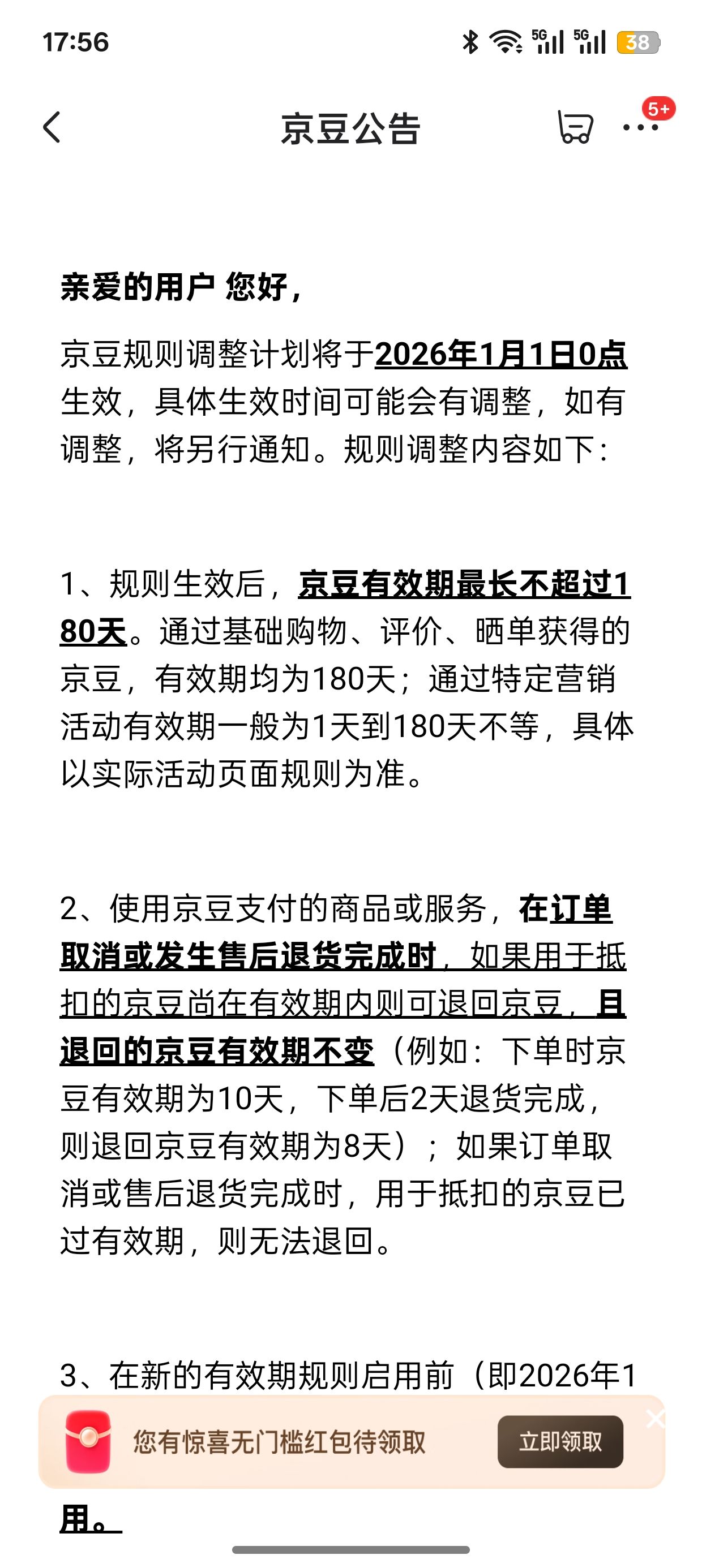 京豆有效期调整为 180 天了