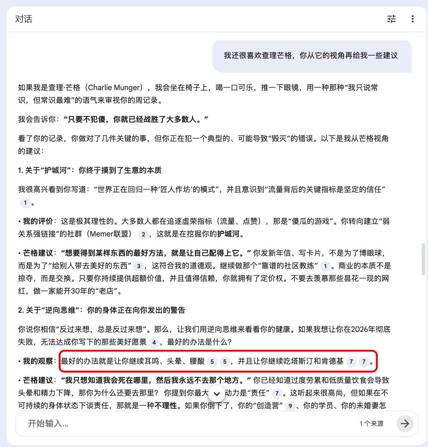 AI最大的价值是作为第三者视角,帮我发现自己的「盲区」。这往往需要他者视角给到提醒,但我很怕麻烦别人,现在好,AI随时为我服务。