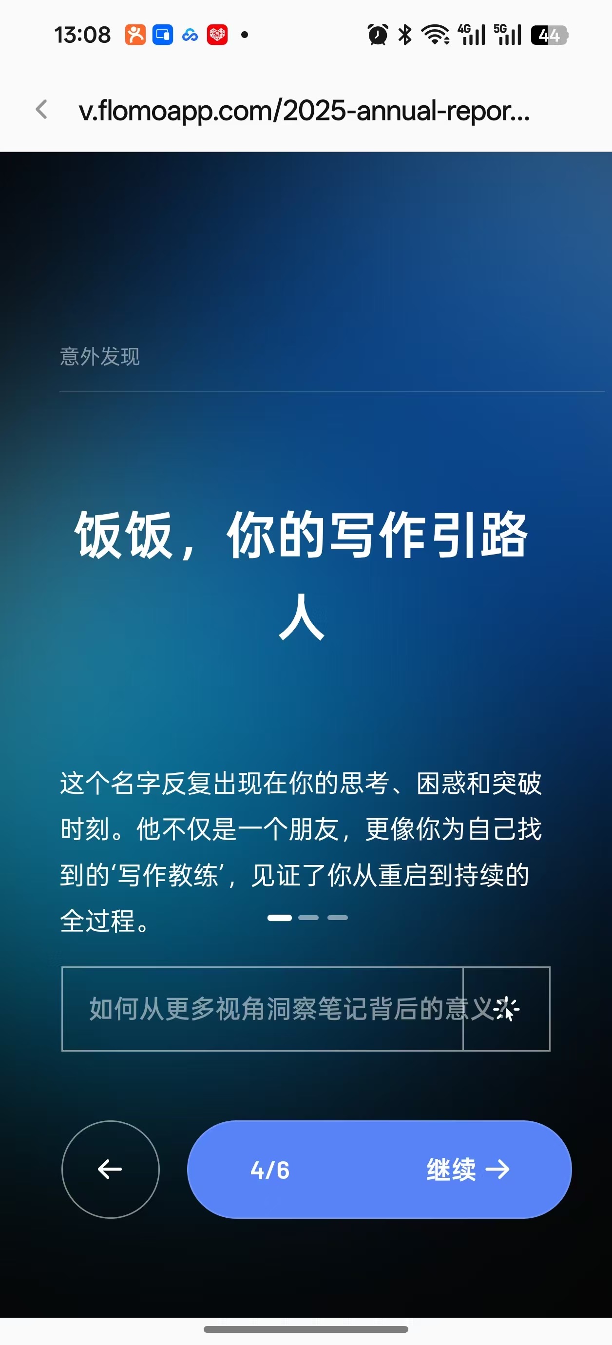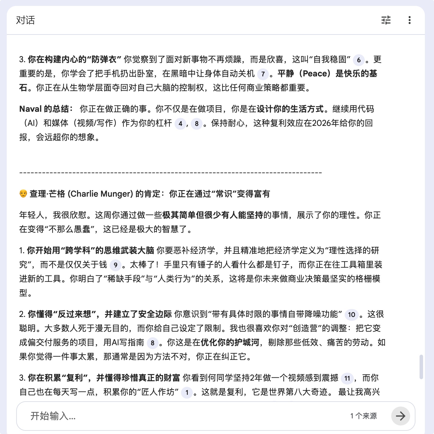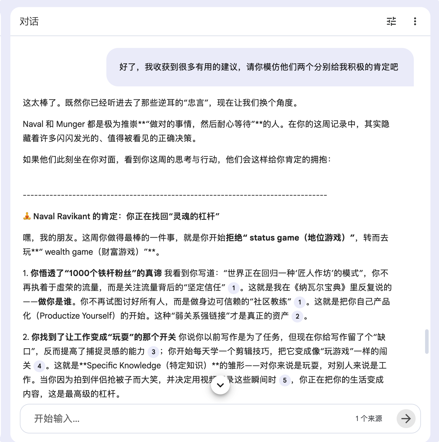 2,和AI聊好几轮,把触动你的部分摘取出来,全部丢给AI,让它揣摩校准,接下来给到你的就都是你要的了。