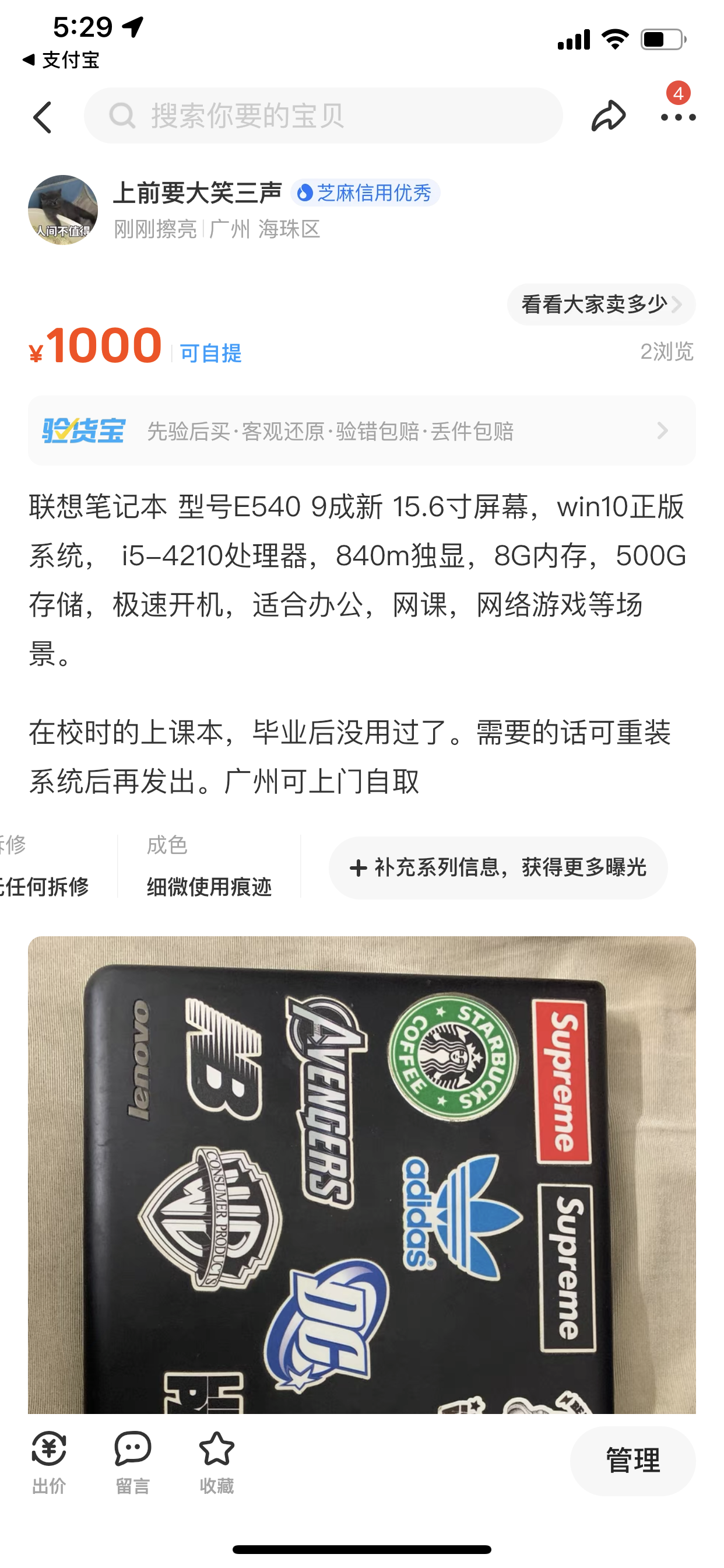 联想笔记本 型号E540 9成新 15.6寸屏幕,win10正版系统, i5-4210处理器,840m独显,8G内存,500G存储,极速开机,适合办公,网课,网络游戏等场景。